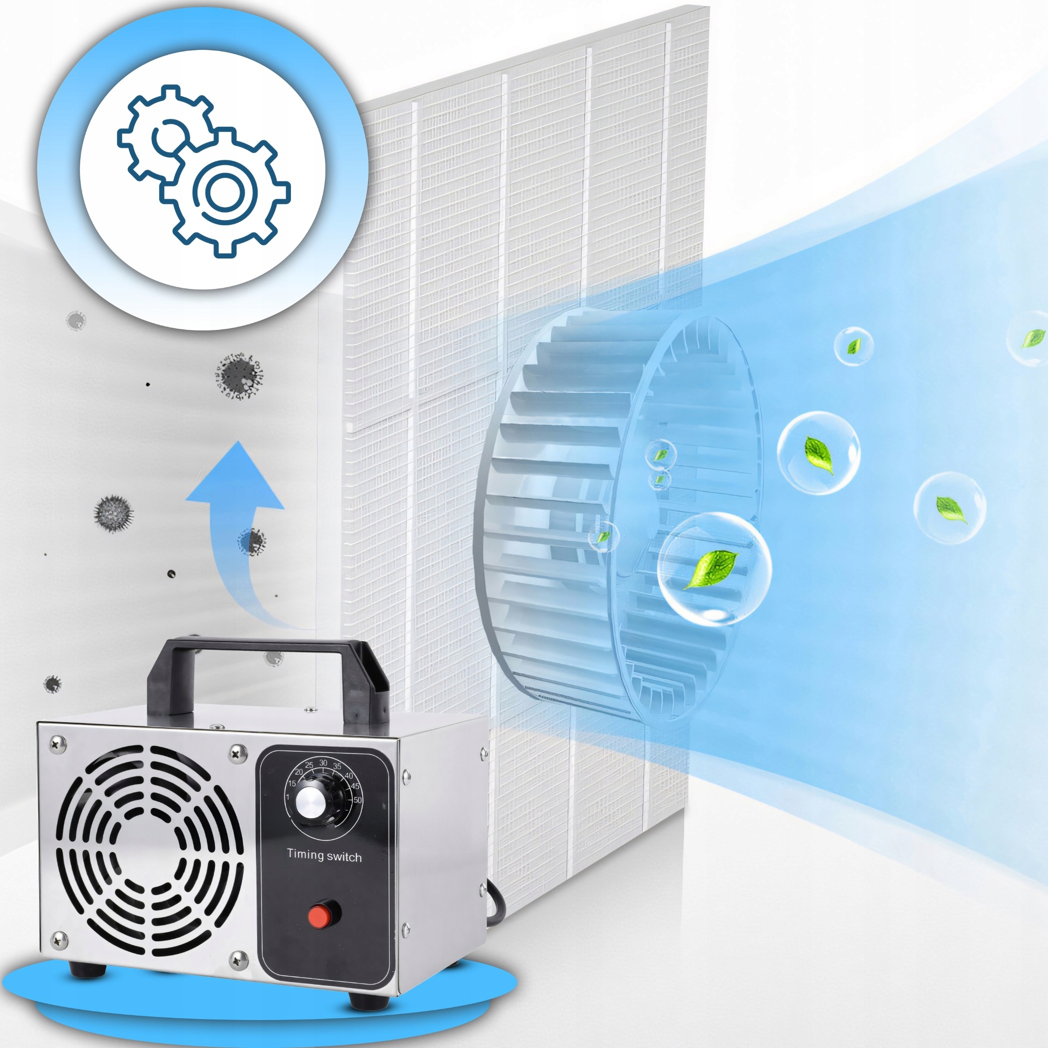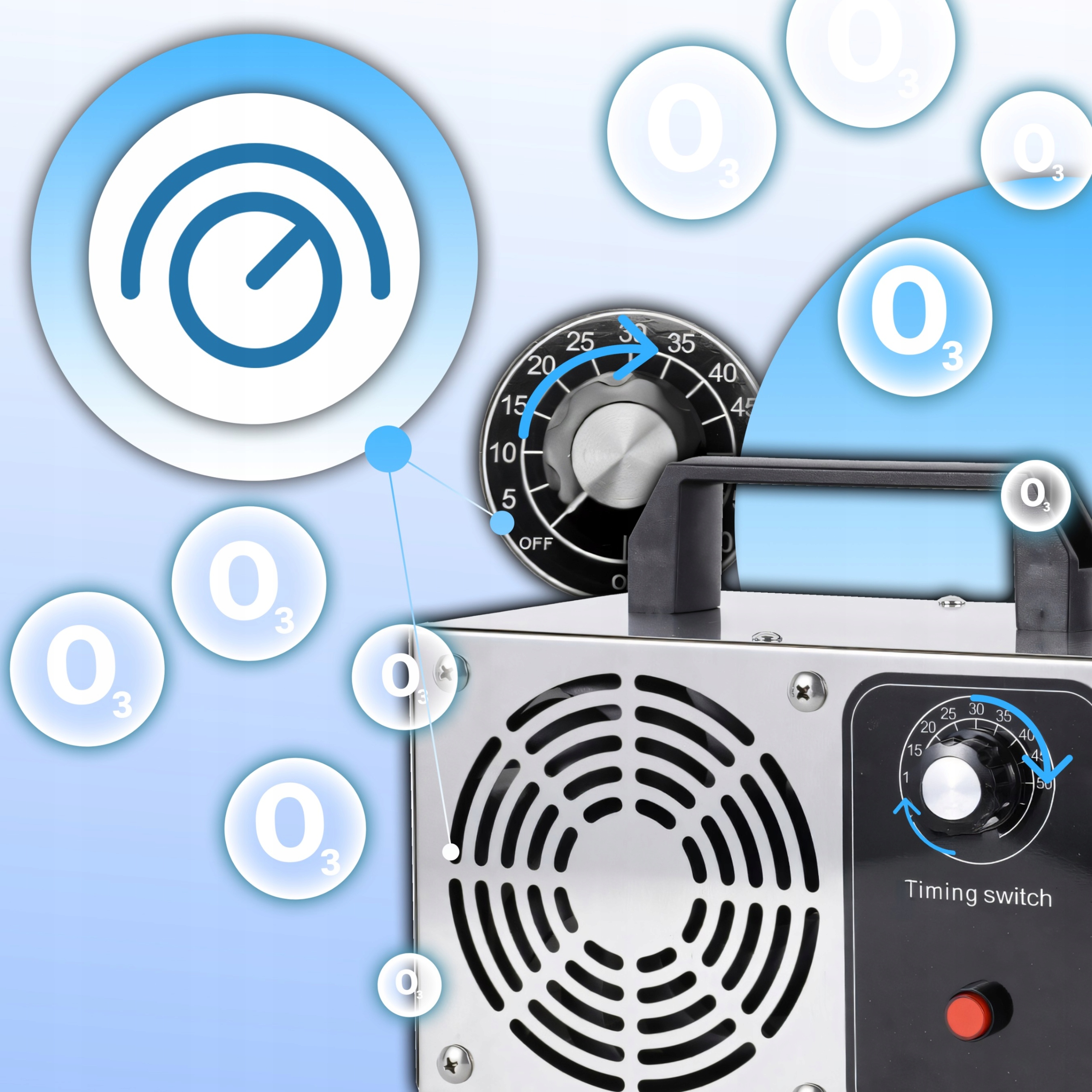 Таймер дозволяє адаптувати час озонації до розміру приміщення або ступеня забруднення повітря , щоб пристрій працював ефективно, і вам не потрібно пам’ятати, щоб його вимкнути. Це рішення забезпечує повний контроль над процесом очищення повітря. 4