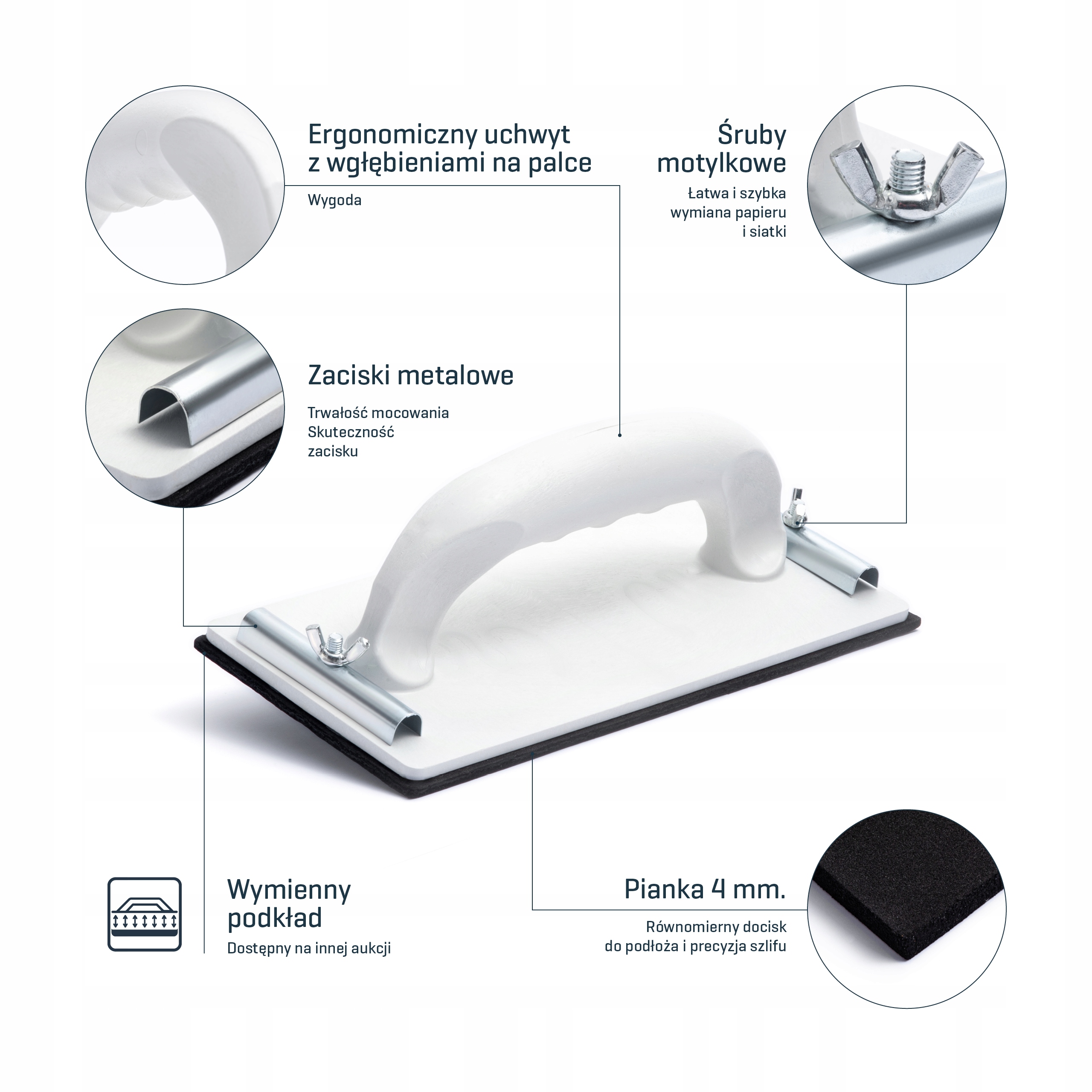 КОМЕНСАЛ || Пластиковий шпатель для наждачного паперу та абразивної сітки з двома затискачами з гвинтами.