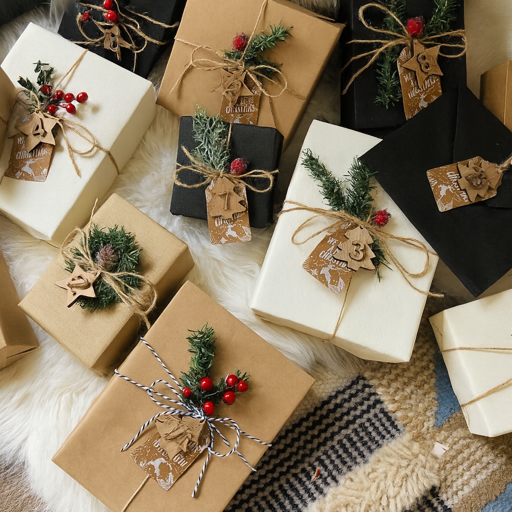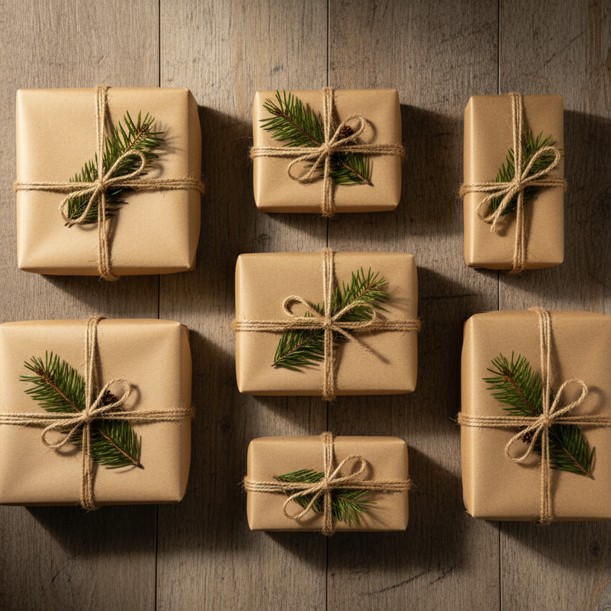 Мінімалістичний, класичний вигляд крафтового паперу ідеально поєднується з ялиновою гілкою, джутовою ниткою або сухофруктами. Він створює позачасовий ефект, який порадує кожного одержувача - від дітей до дорослих.