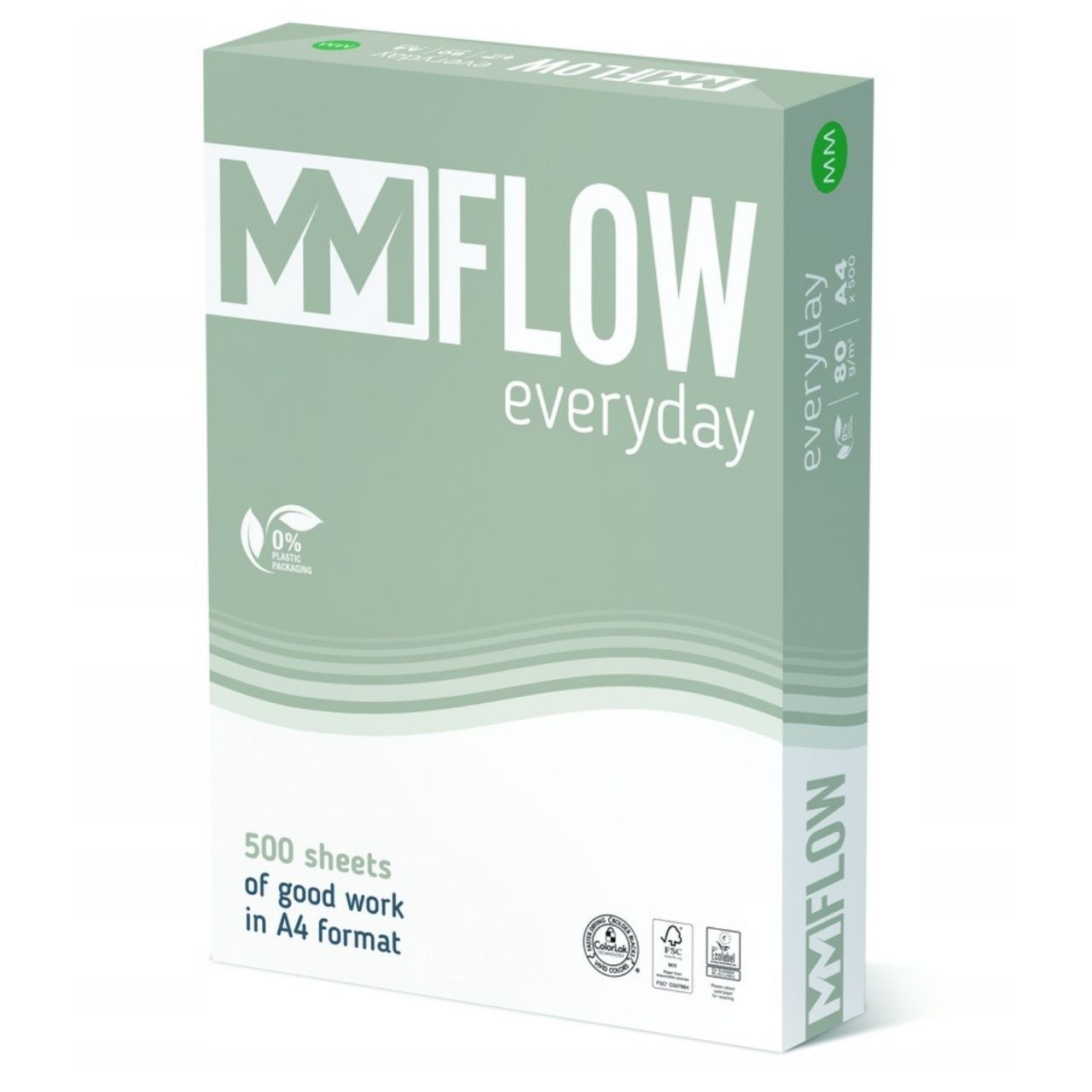 MMFLOW Щоденний копіювальний папір є одним із продуктів, які найчастіше купують як для офісу, так і для дому. Ідеально підходить для всіх видів мистецтва та шкільних робіт. Структура аркушів ідеально працює з принтерами та копіювальними апаратами. Високий рівень білого кольору гарантує високу насиченість кольорів і відтворення деталей. Стандартний формат А4 є найпопулярнішим завдяки своїй універсальності та незаперечній практичності. В одній пачці 500 аркушів, а представлена збірна упаковка містить аж 5 пачок, що робить продукт неймовірно ефективним. MMFLOW Everyday paper — це найякісніший продукт, надійний у кожному офісі та вдома.