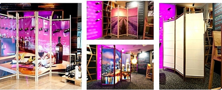 За допомогою системи стулок, з'єднаних між собою петлями, ми можемо розділити та прикрасити житлове або офісне приміщення. Ширму MODERN можна використовувати як пересувну стіну, що відокремлює гардероб, обідню зону або робочий куток. Так само ми можемо розмістити його у вітальні, офісі чи точці обслуговування.