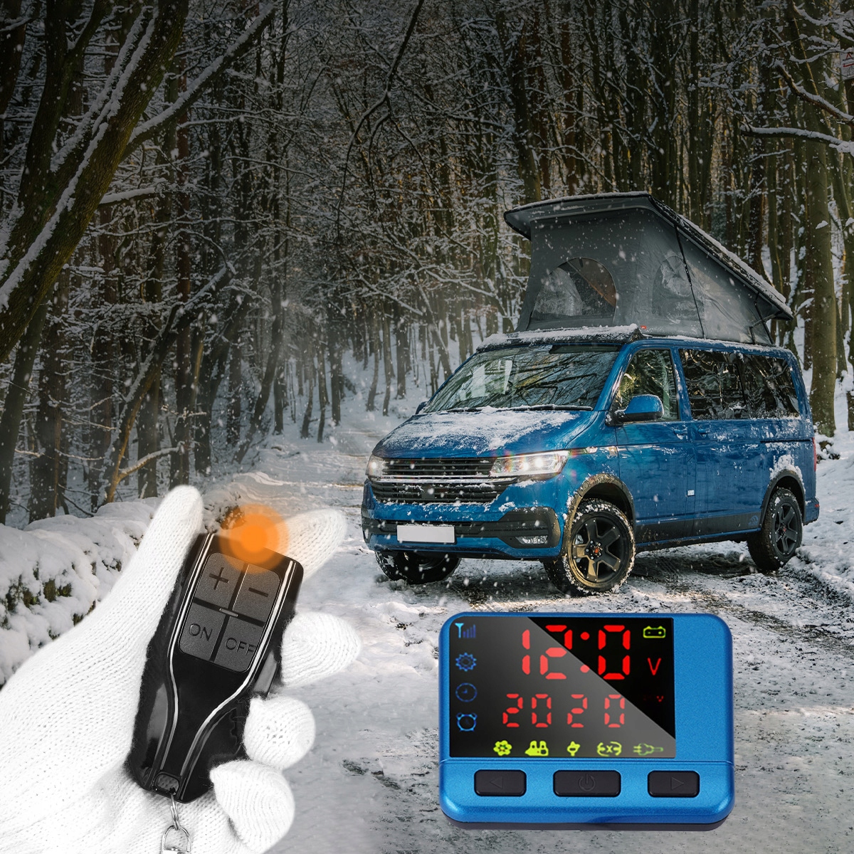 - За допомогою РК-цифрового монітора ви можете чітко бачити робочий стан дизельного повітронагрівача. Можливість попереднього підігріву за допомогою дистанційного керування дозволяє комфортно зайти в автомобіль.