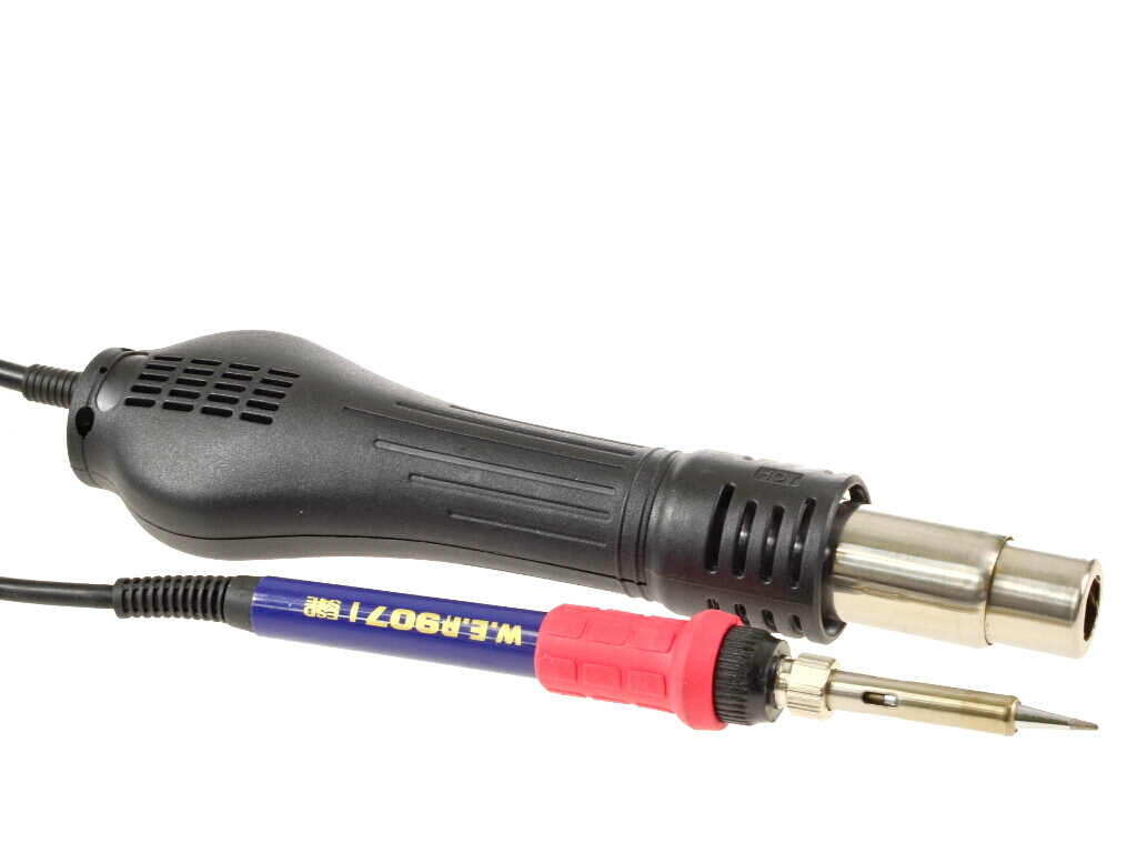 Станція використовується для паяння та розпаювання електронних компонентів, усадки, зварювання пластику, нагрівання.