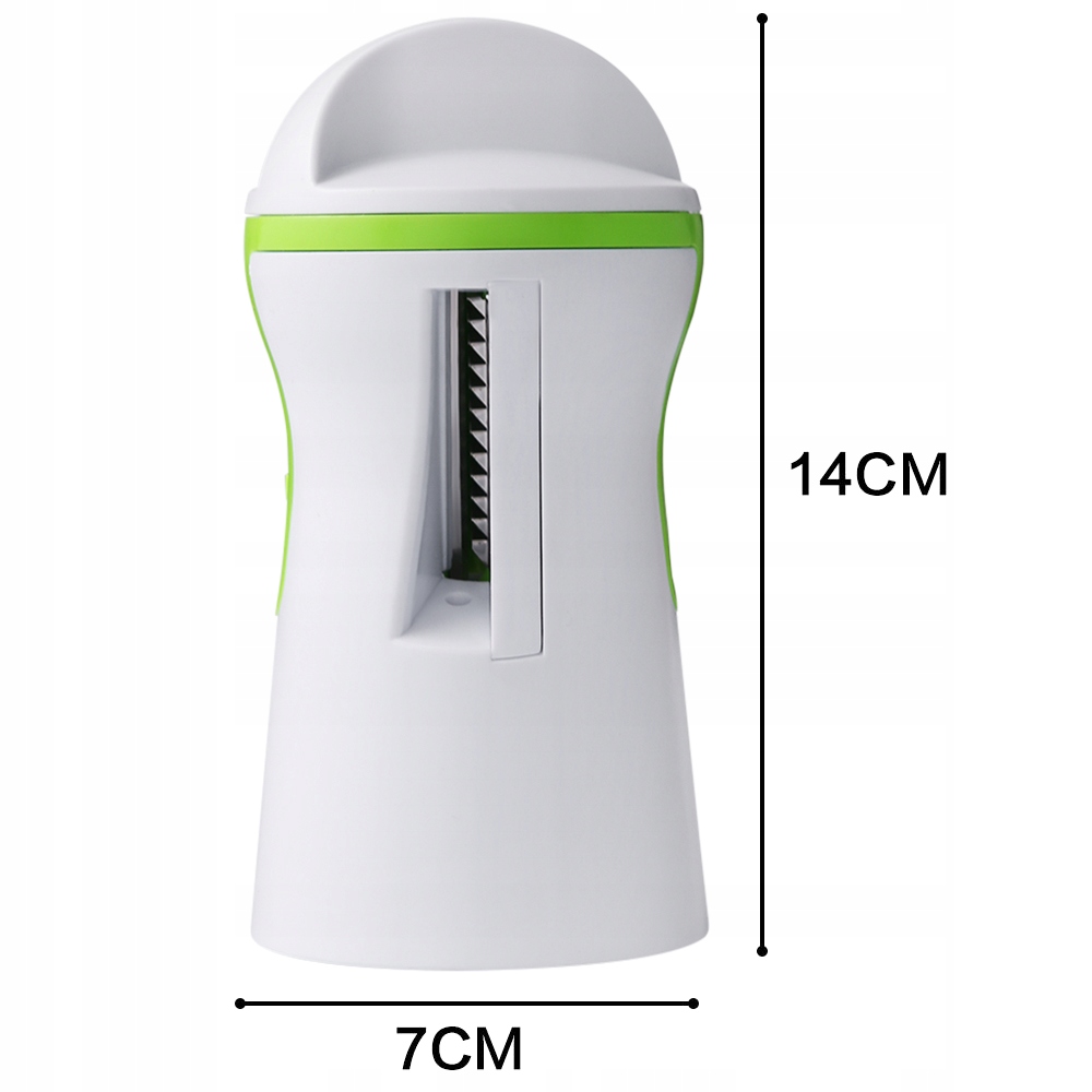 Представлений кухонний гаджет дуже простий у використанні. Просто вставте будь-який овоч в спеціальний отвір і покрутіть. Обертання зап’ястя дозволяє нарізати овочі химерними візерунками.