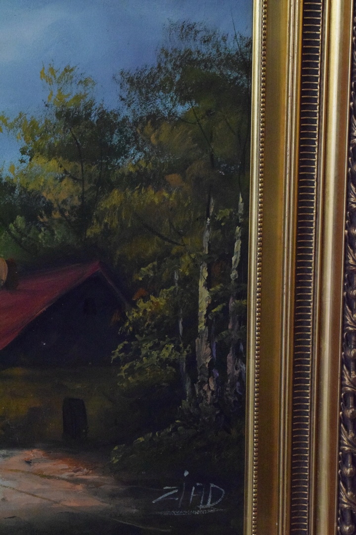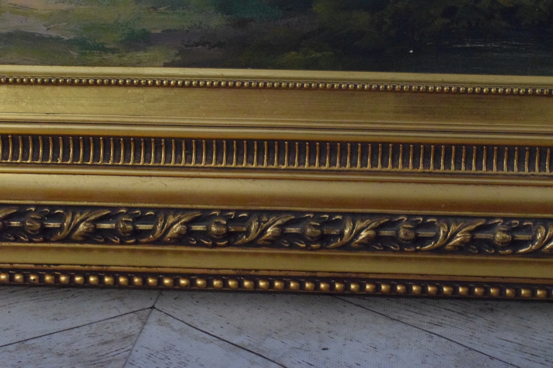 Ландшафтне село - Літо, Ліс, Котедж - Масляна картина на полотні - Золота рамка 143 см