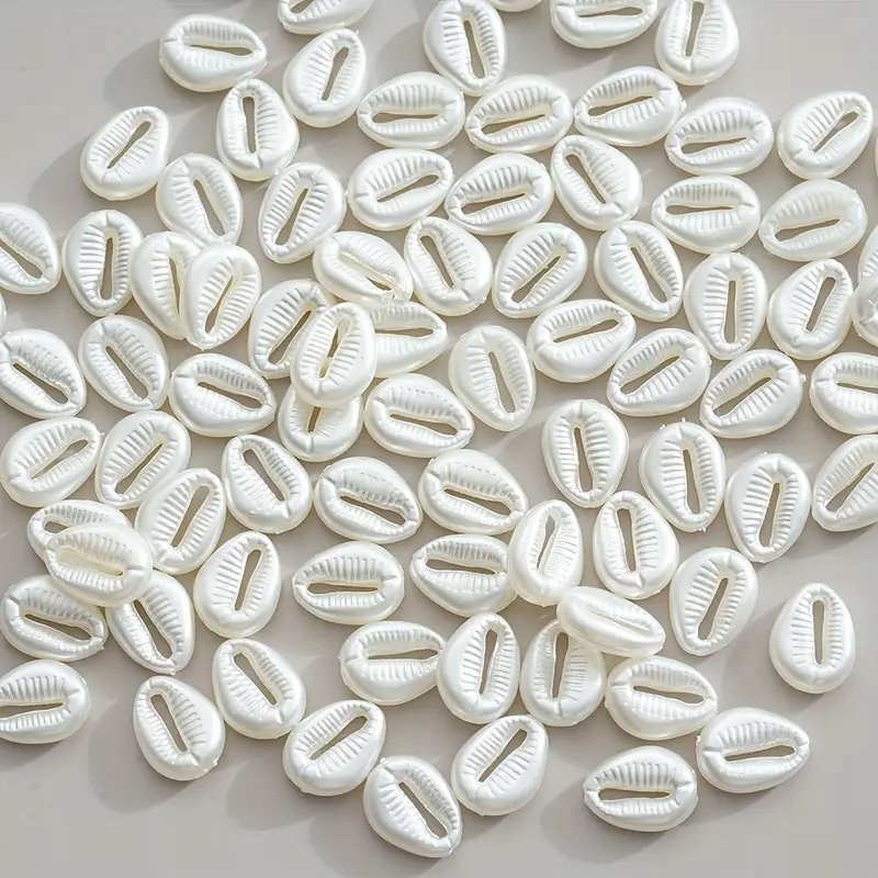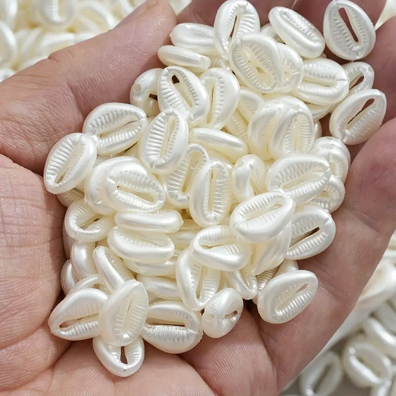 Per14 Pearl Akrylic Beads Shells Cauri White 10 pcs
