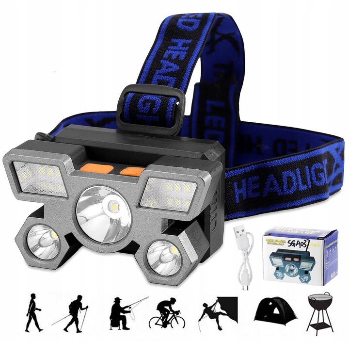 Передній ліхтарик 5 світлодіод USB -акумулятор міцний для голови.