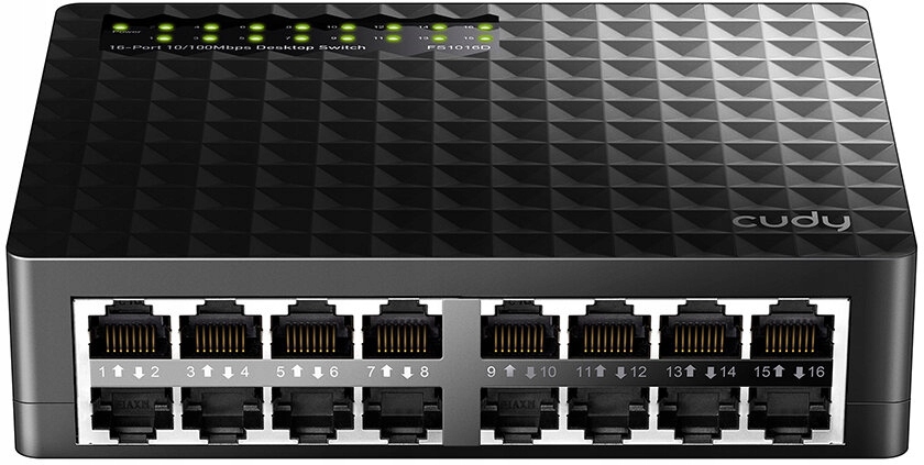 - 16 портів RJ45 10/100 мб/с з автоматичними переговорами, що підтримують Auto-MDI/MDIX