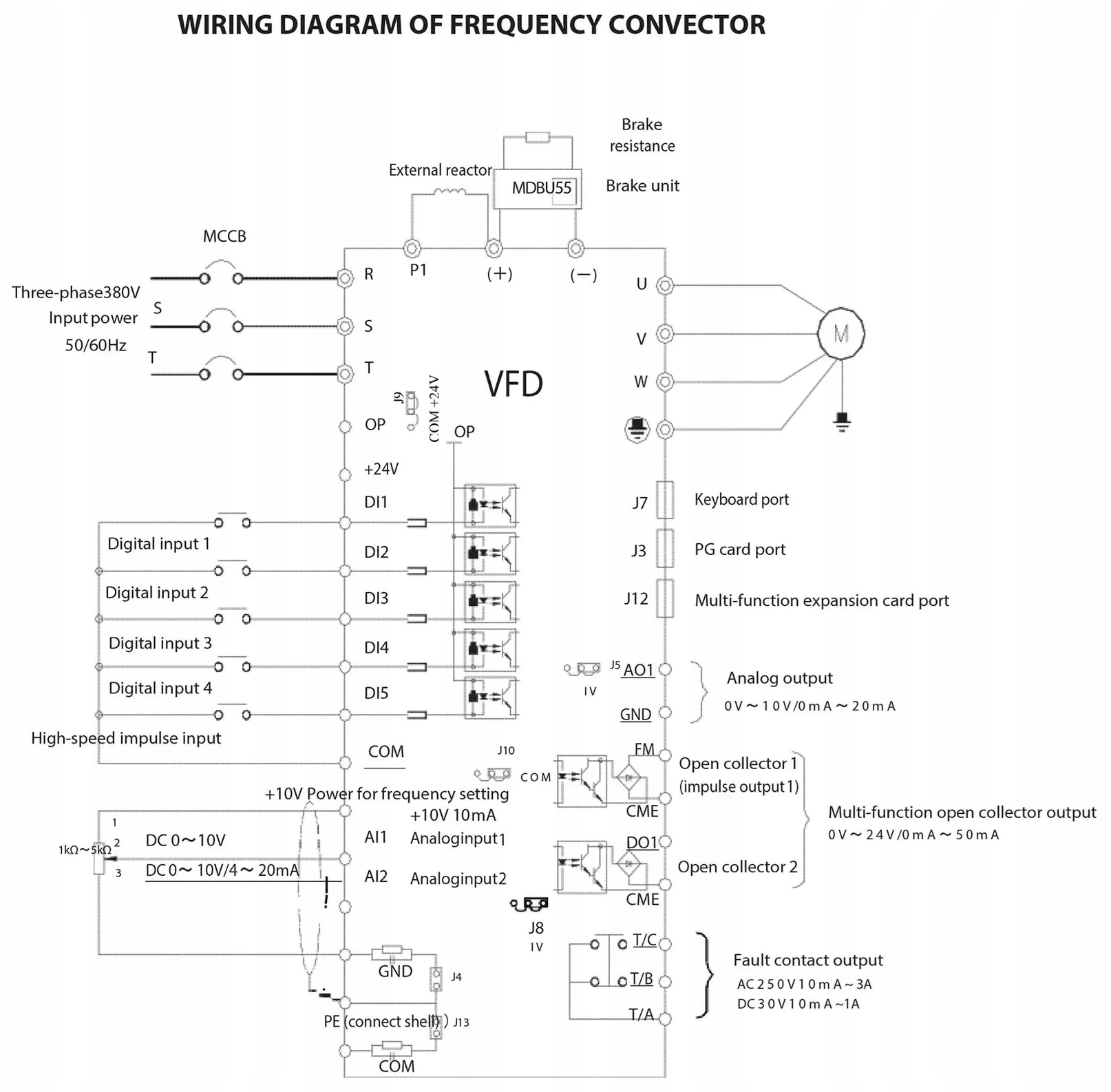 трифазний перетворювач 380 В має векторне управління датчиком швидкості, контролем вектора та управлінням v/f. Розділення v/f. Світлодіодний дисплей легко керувати налаштуваннями. Обладнання оснащене гальмом.