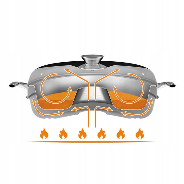- Ідеально продумана конструкція забезпечує рівномірний розподіл тепла, а отвір термометра в кришці гарантує контроль над процесом приготування.
