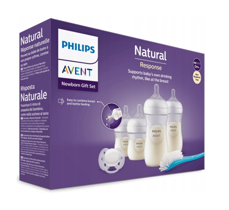 PHILIPS AVENT NATURAL RESPONSE СТАРТОВИЙ НАБІР 4 ПЛЯШКИ + ЩІТОЧКА ДЛЯ СОСКІВ