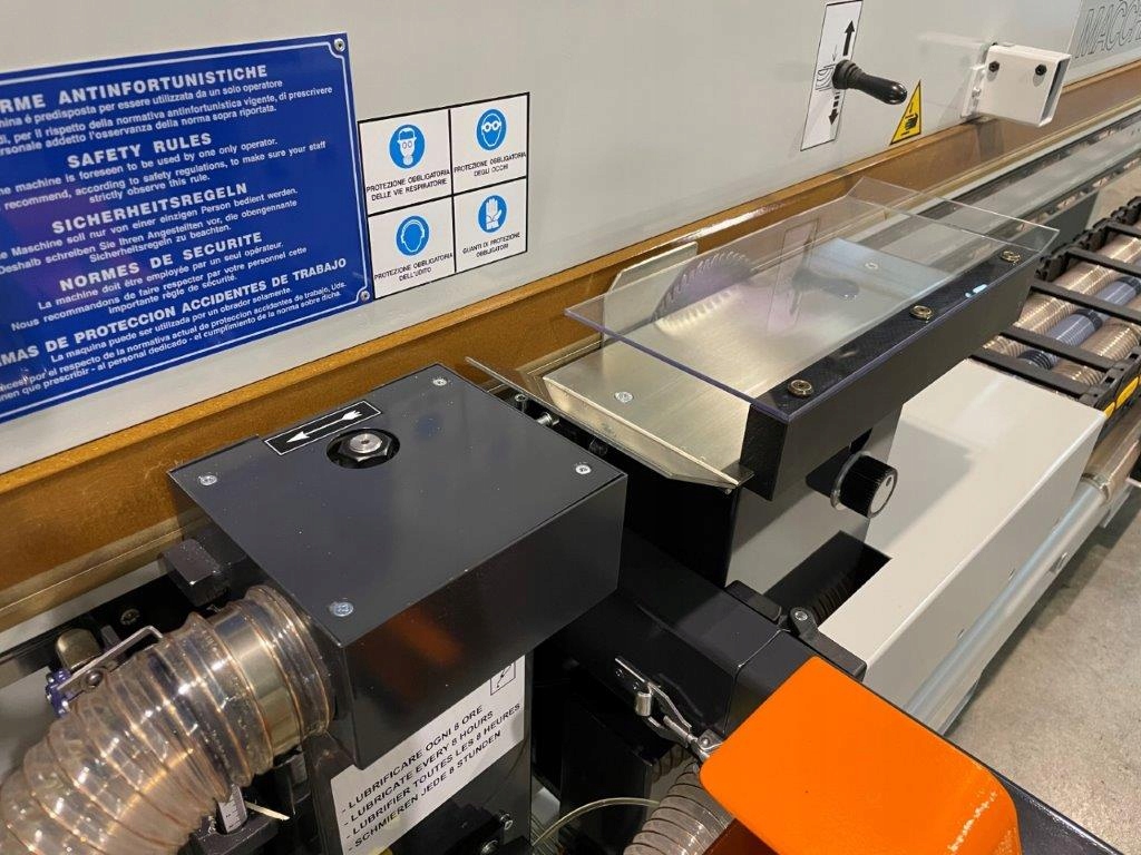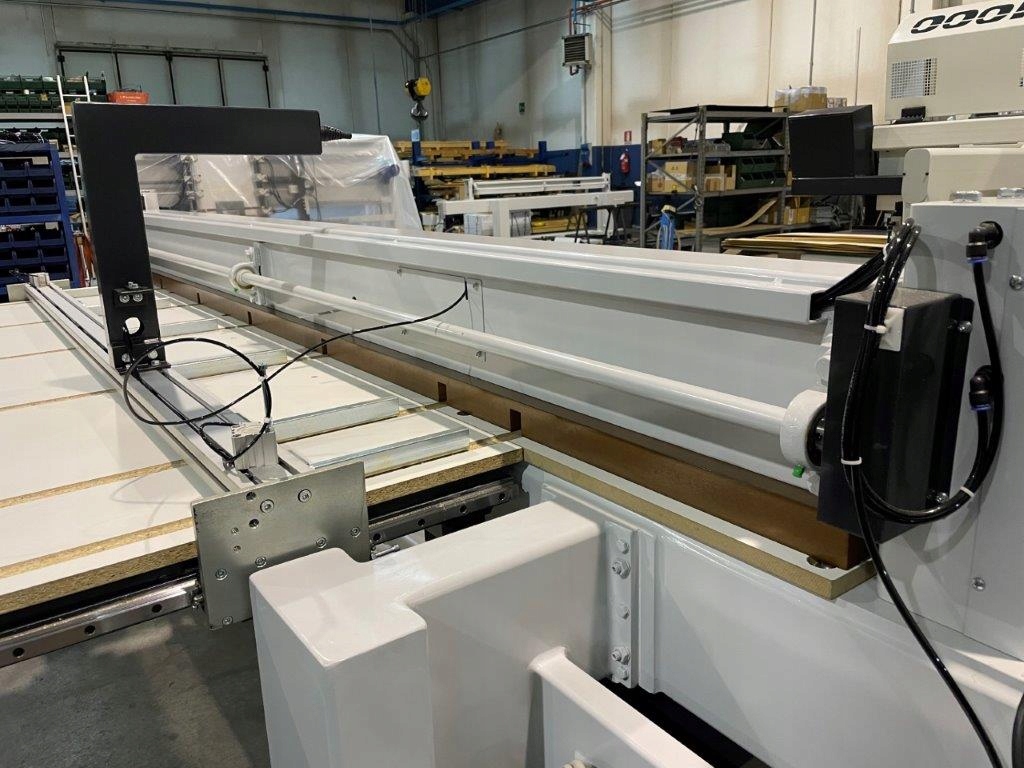 - Задній стіл з рухомою фурнітурою, пневматичною системою тиску, путівники з кульковими підшипниками, макс. Ширина 600 мм