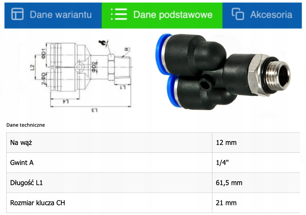 тип ротаційного трійника '' y '' із зовнішньою ниткою з двома гніздами для шланга із зовнішньою калібруванням. Елемент, що дозволяє підключити пневматичні кабелі з іншими елементами пневматичної системи. Підключення відбувається через кабельний затискач у роз'ємі та встановлення вмикання у відповідну різьбову розетку. 4 +60 ° С. Максимальний робочий тиск становить 15 бар/вакуум. Робоче середовище - це стиснене повітря/вакуум, а також рідина.