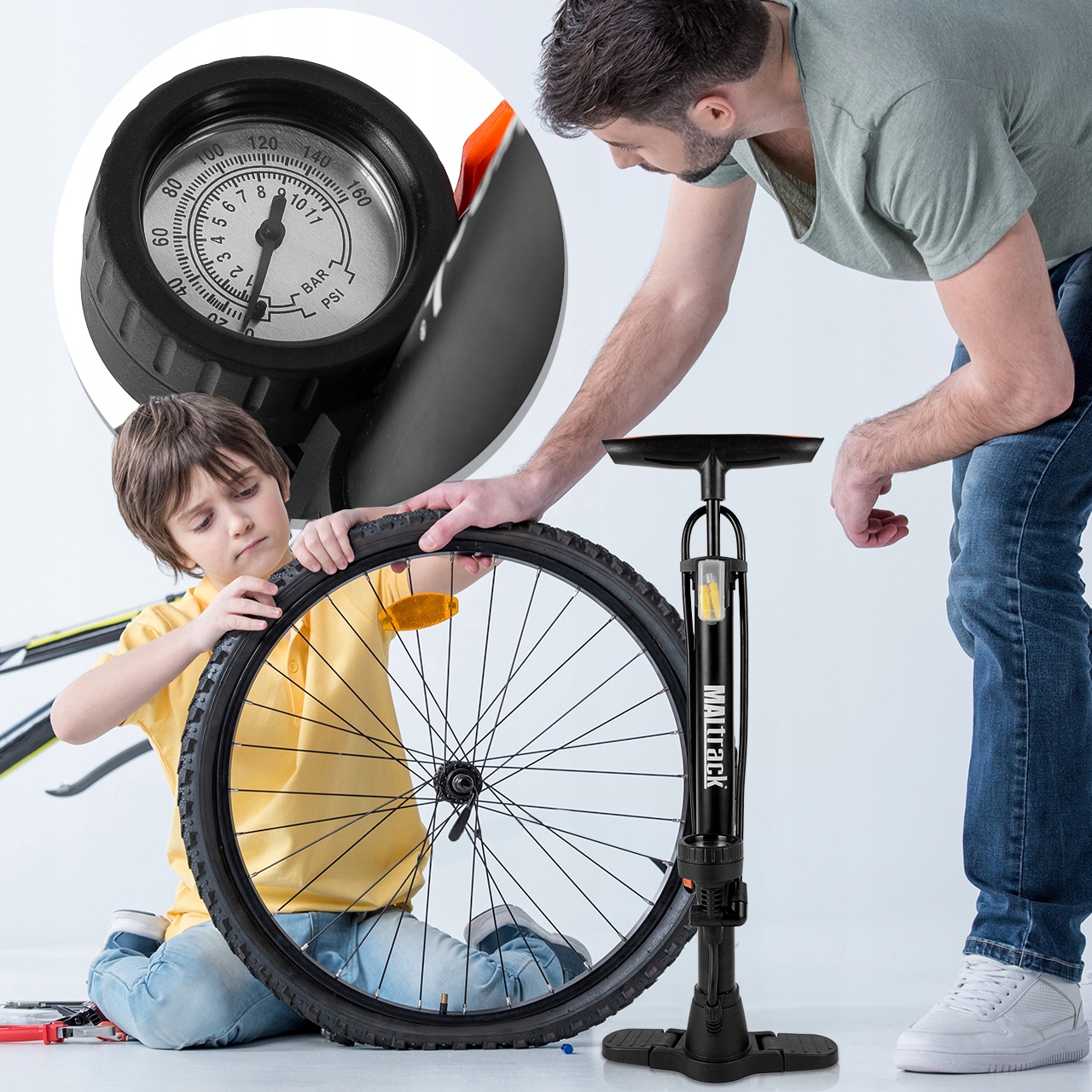 ПІДЛОГОВИЙ ВЕЛОСИПЕДНИЙ НАСОС З МАНОМЕТРОМ ДЛЯ ВЕЛОСИПЕДНИХ М'ЯЧІВ МАТРАС 3 КІНЦІ