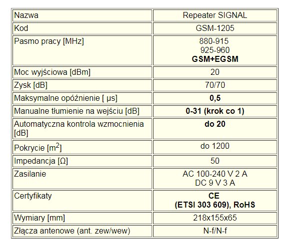 Підсилювач (повторювач) SIGNAL GSM-1205 — споживчий пристрій, що підсилює весь діапазон GSM+EGSM, відповідає вимогам директиви RED 2014/53/EU і стандарту ETSI 303 609. Пристрій має декларацію CE.