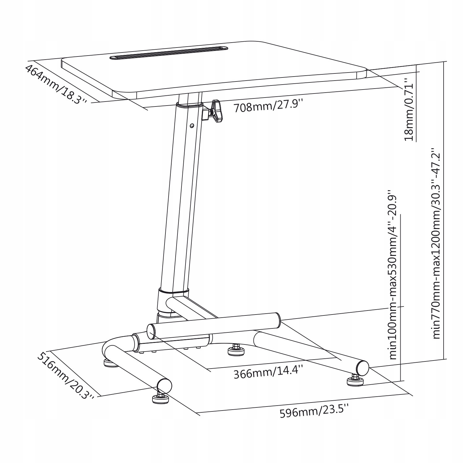 - Регулювання висоти поверхні: від 77 до 120 см