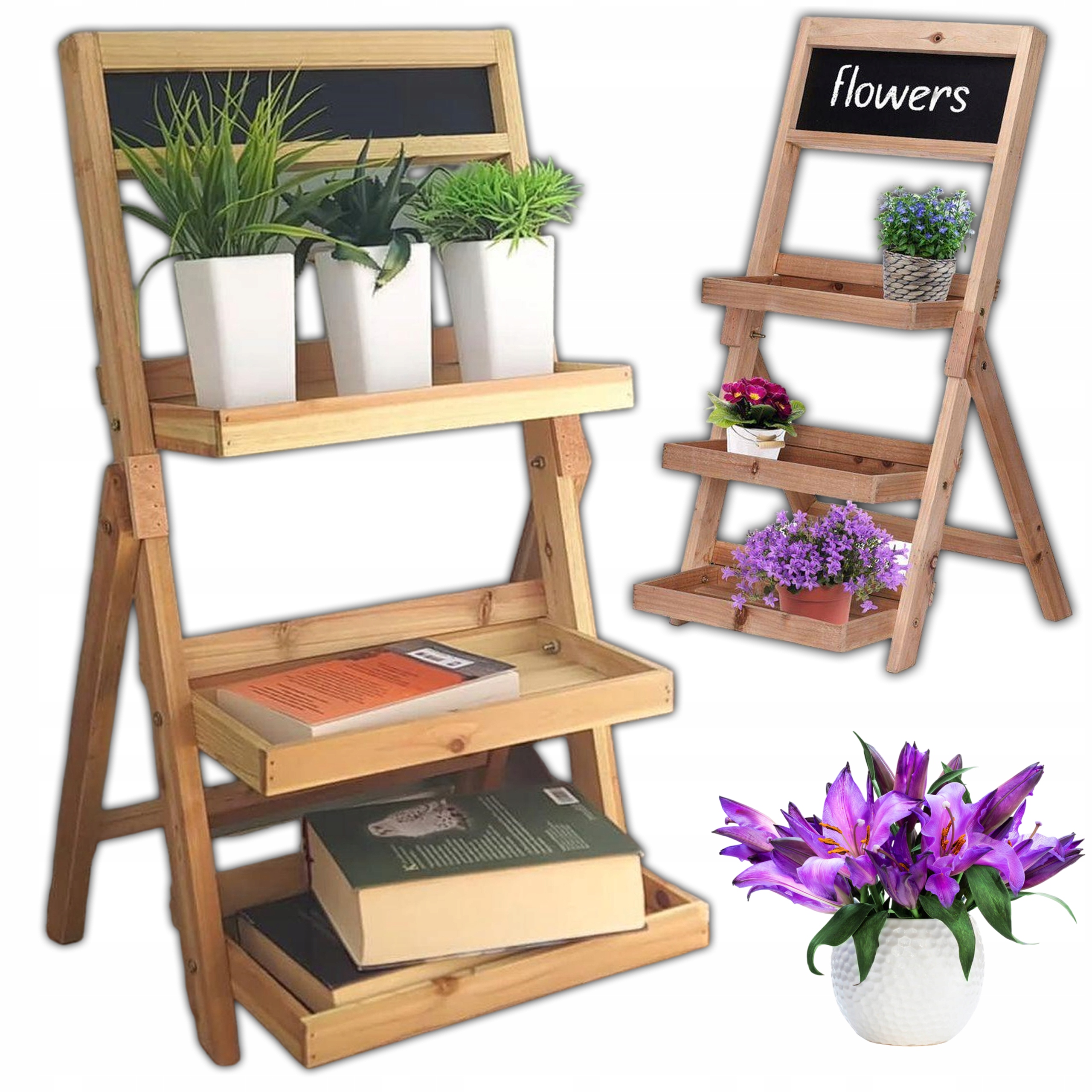 Підставка для квітів Дерев'яна підставка для квітів Стоячі горщики для квітів Складна книжкова шафа 3 полиці