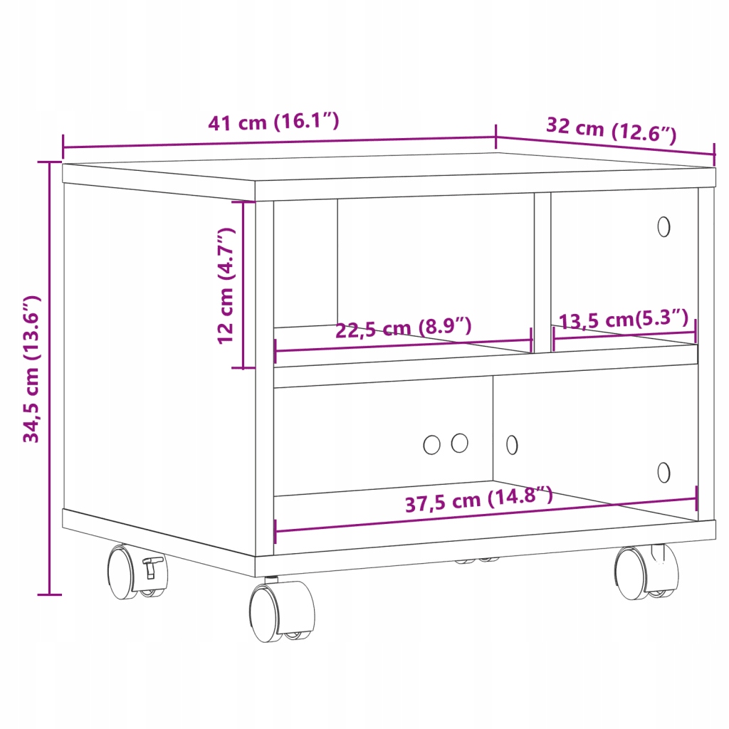 Дорога для принтера, з колесами, сірим дубом Sonoma, 41x32x34.5 см
