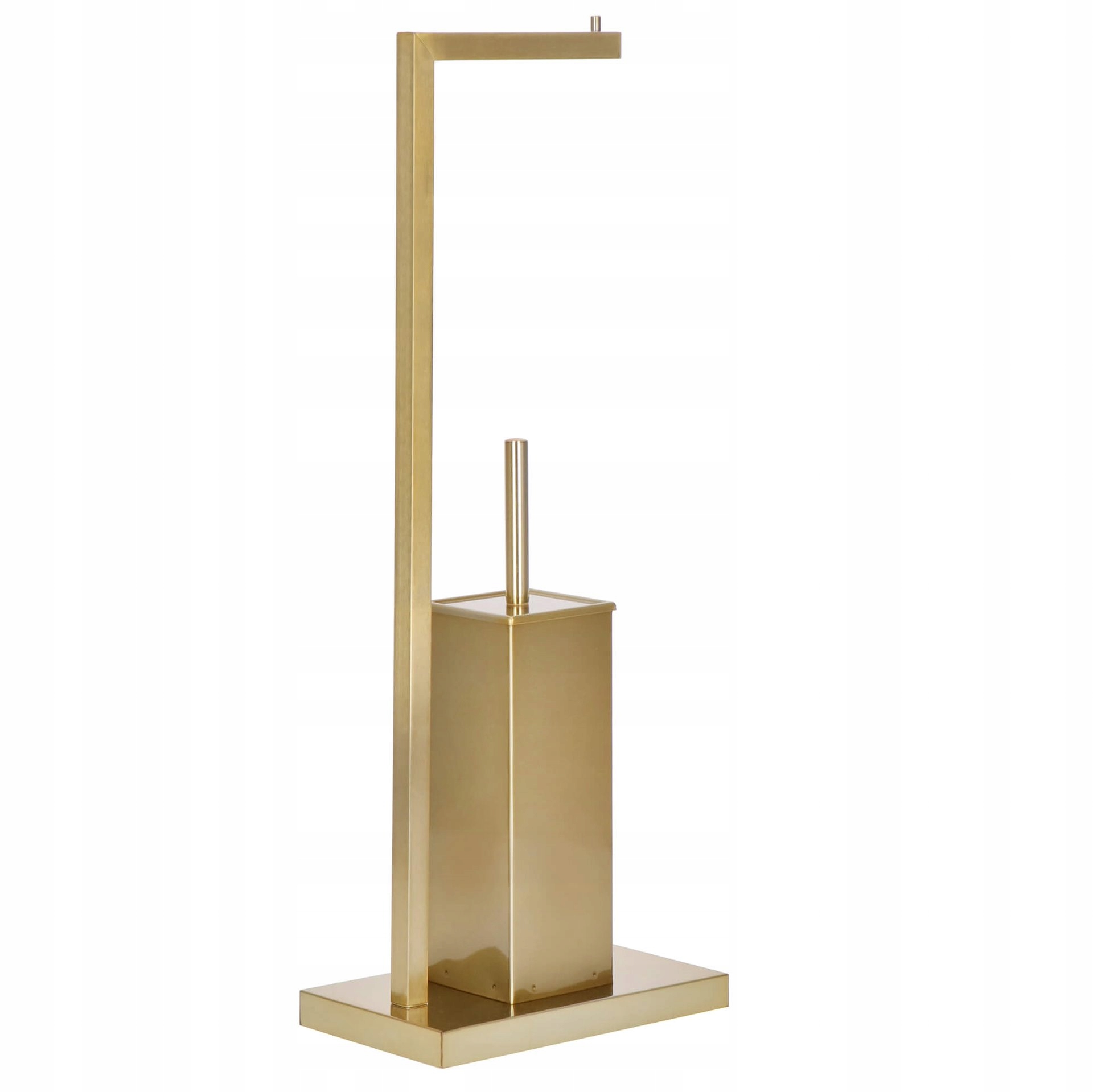 Окремо стояча туалетна щітка з вбудованим тримачем для туалетного паперу виготовлена з найкращої якості матеріалів. Метал золотого кольоруз блискучим покриттям виглядає акуратно та підійде до багатьох стилів ванної кімнати.