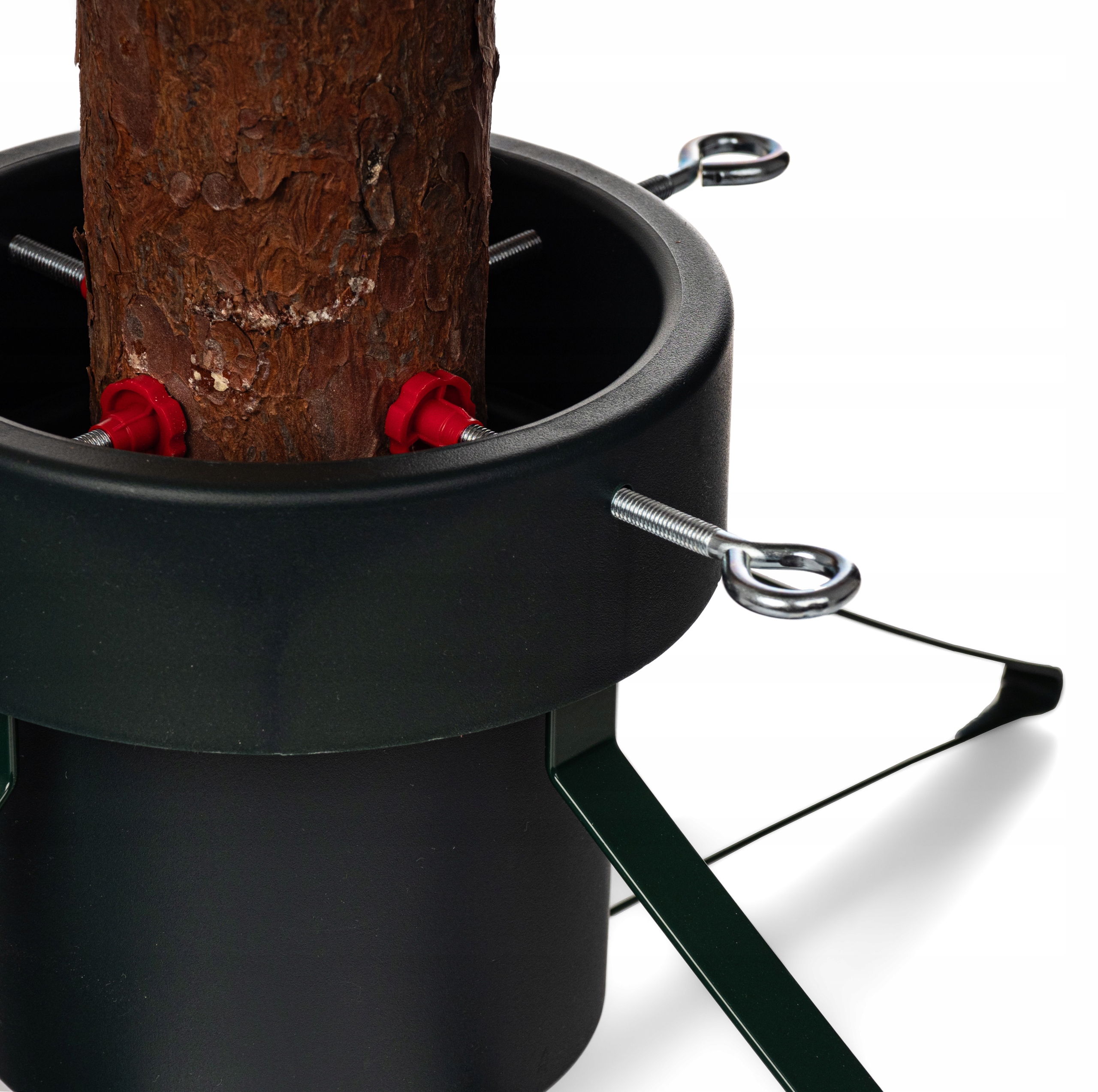 Чотири міцні кронштейни гарантують надійну підтримку навіть для великих ялинок. У набір входять чотири регульовані гвинти, які забезпечують ідеальне прилягання до стовбура.
