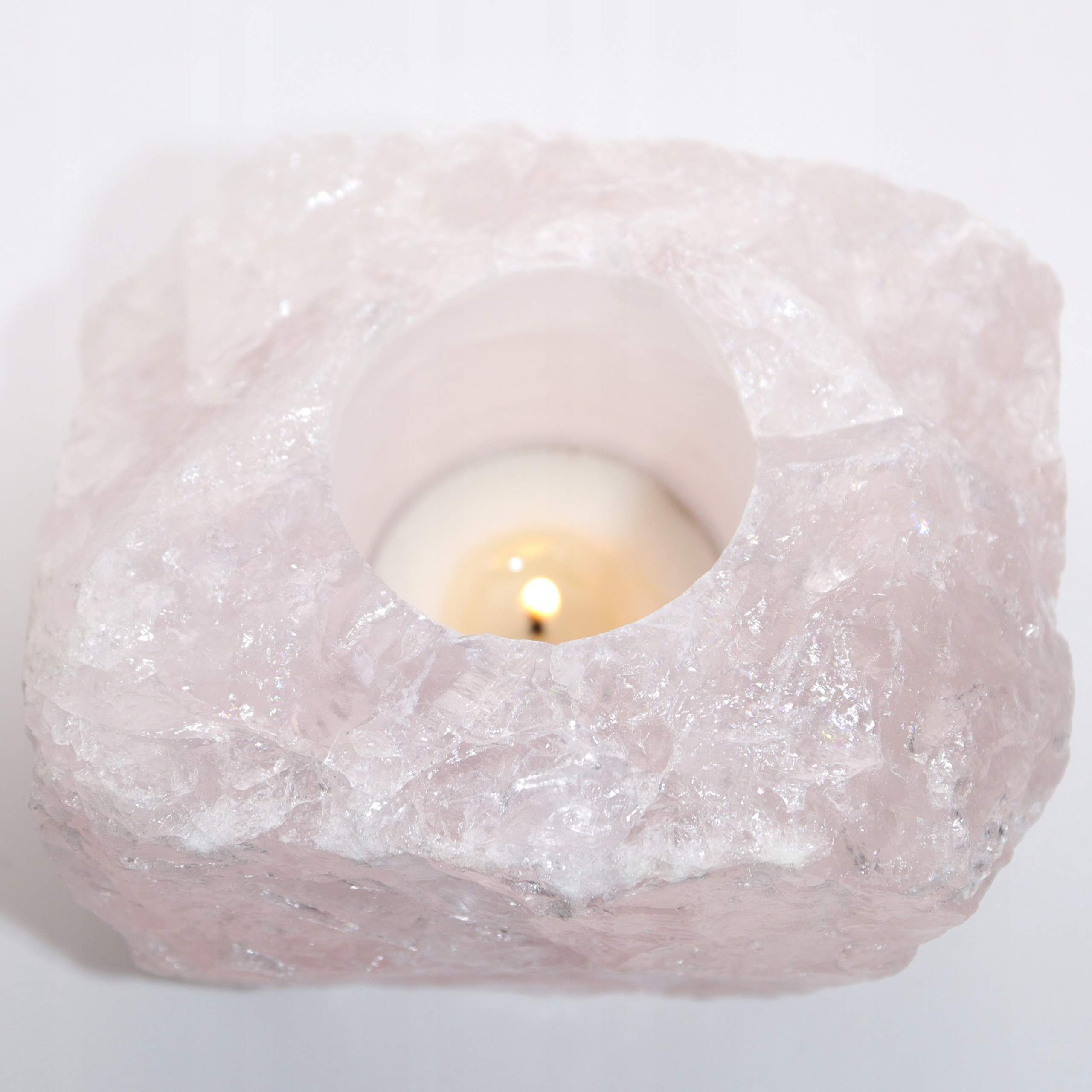 Підсвічник з натурального каменю, кришталевий рожевий кварц, чайна свічка