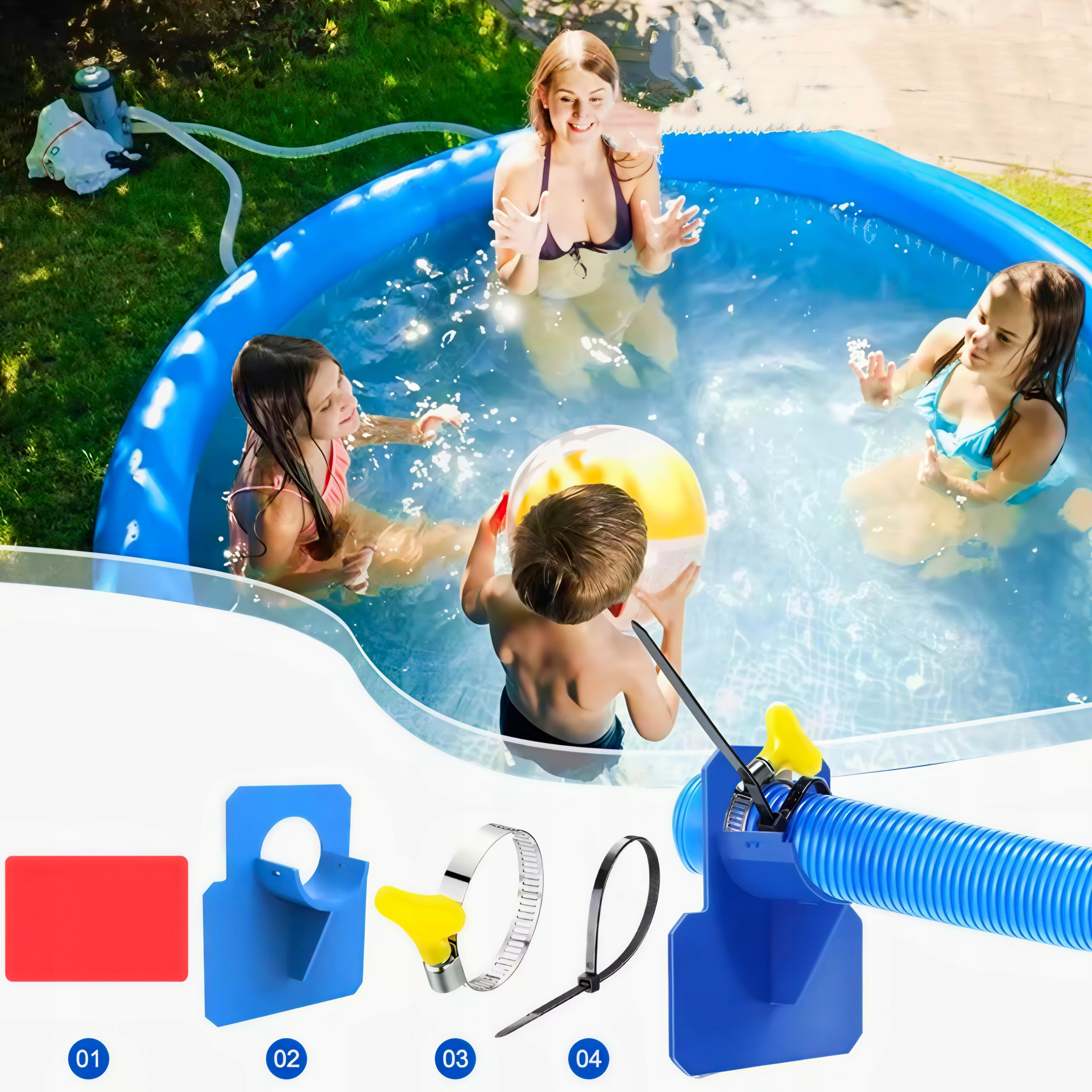 【Легка установка】 На задній частині кронштейнів труб басейну є подвійна стрічка, її не потрібно відновлювати, свердлюючи отвори. Зміцнює змії в кронштейні і затягніть за допомогою прикріплених кабельних смуг, щоб зробити процес встановлення без проблем.