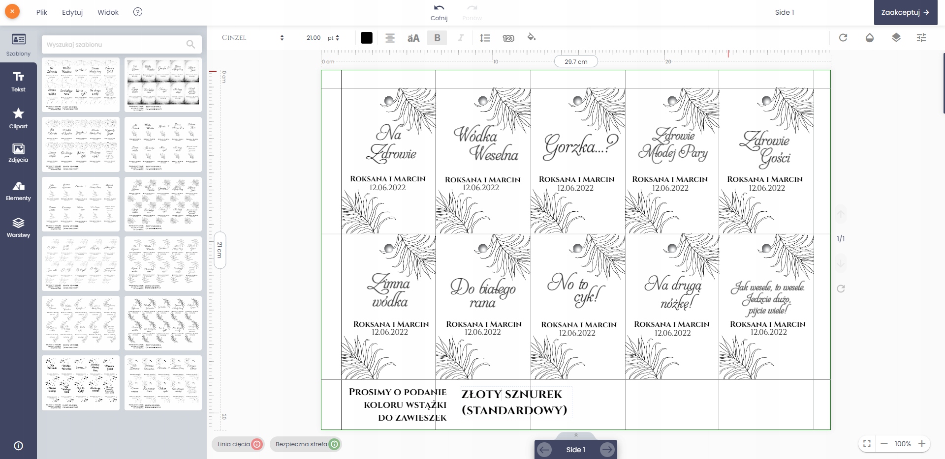 ПІДВІСКИ етикетки для горілки Weselna позолочені 10 шт