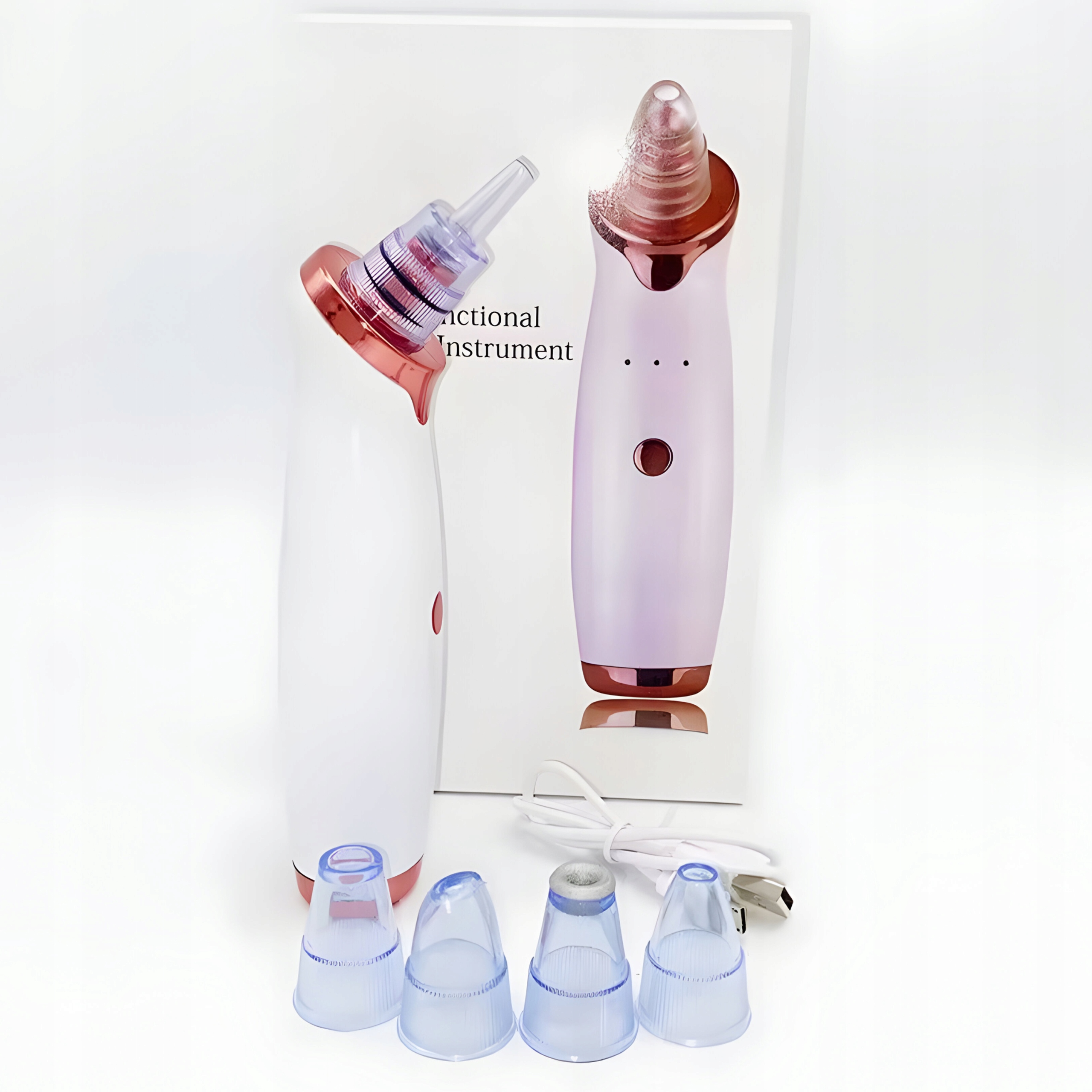 Вакуумний очищувач пор оснащені 5 різних всмоктувальних головки, кожна з них призначена для конкретної мети . Сюди входить мікрокристалічна головка для ніжного відлущування , великих вакуум для ефективного видалення вугрів, менша голова для точної догляду, овальної голови та спеціальної крихітної наконечника з розширенням шкіри в жорстких місцях.