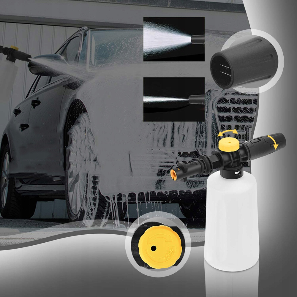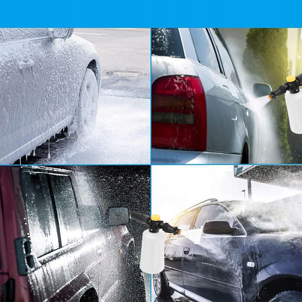 【【Легко встановити та підтримувати】: пістолет з пінопласту може бути підключений безпосередньо до шайби серії Karcher високого тиску (K2 - K7). Увімкніть верхню ручку відповідно до руху за годинниковою стрілкою, щоб увімкнути/вимкнути, щоб отримати найгустішу суміш, відрегулюйте насадку, щоб отримати потрібний візерунок розпилення та звільнити. Регульований пістолет для розпилення для виробництва снігової піни дозволяє точно змішати та пінити