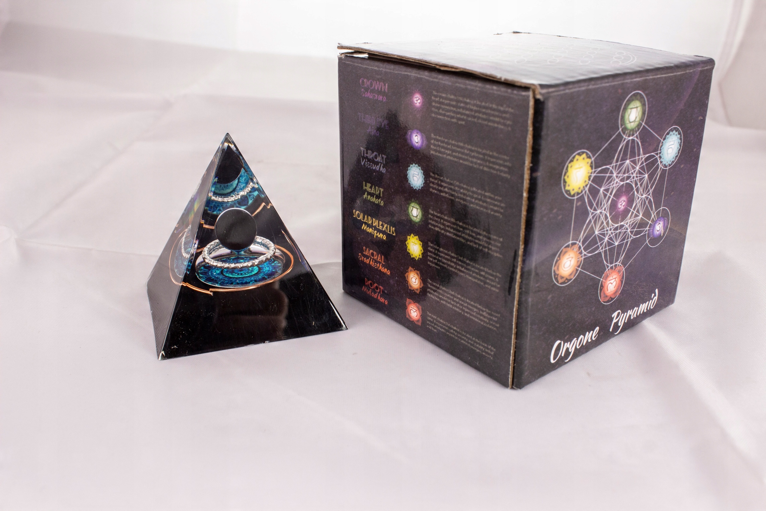Ця піраміда благотворно впливає на кожну із семи чакр, а завдяки каменям і мінералам, які не тільки виглядають красиво, але й мають власну силу, енергію та зцілення, вони посилюють цінний ефект очищення та розблокування чакр, що приносить добро, щастя, здоров’я.