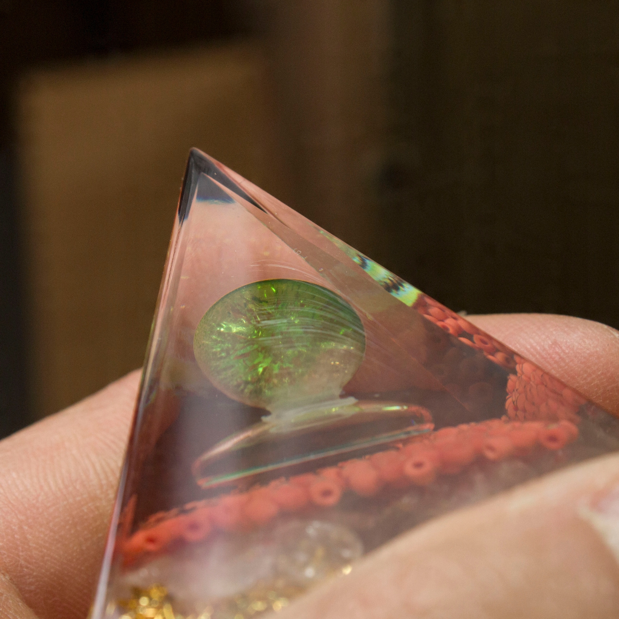 ПІРАМІДКА ОРГОНІТ КВАРЦ РОЖЕВА ЗОЛОТА ПЛІВКА 5 см -ДЕФЕКТ ЧИТАТИ ОПИС