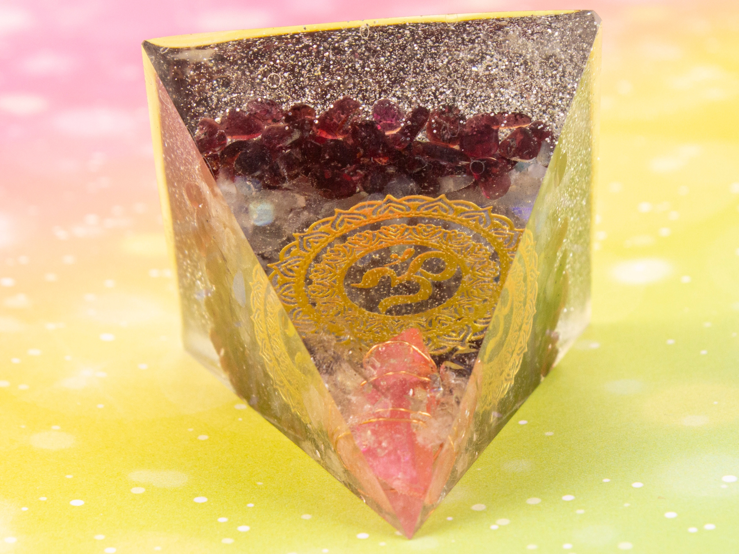 Відкрийте для себе магію оргонітової піраміди, що приховує силу мінералів і містичний символ нескінченності OM. Красива оргонітова піраміда з прекрасним зовнішнім виглядом і цікаво підібраними каменями та мінералами означає кращу впевненість у собі, кращі стосунки та дружбу.