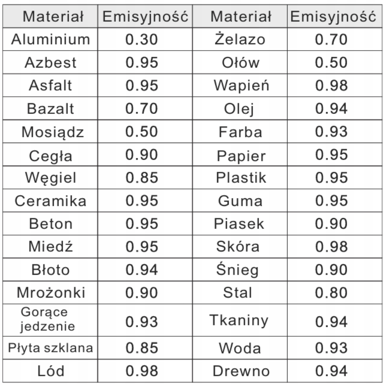 Завдяки цій функції ваш пірометр - це набагато більш універсальний інструмент, ніж дешеві пристрої з заводським значенням 0,95, який працює лише в матеріалах вимірювання Метта.