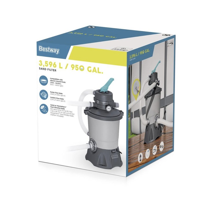 ✔ Ефективна у фільтрації води - Бесквейський пісочний насос розроблений для роботи з кварцовим піском (8,5 кг) та фільтрів (240 г), обидва забезпечують високу ефективність фільтрації, зняття забруднення та залишання води та прозорості протягом тривалого часу