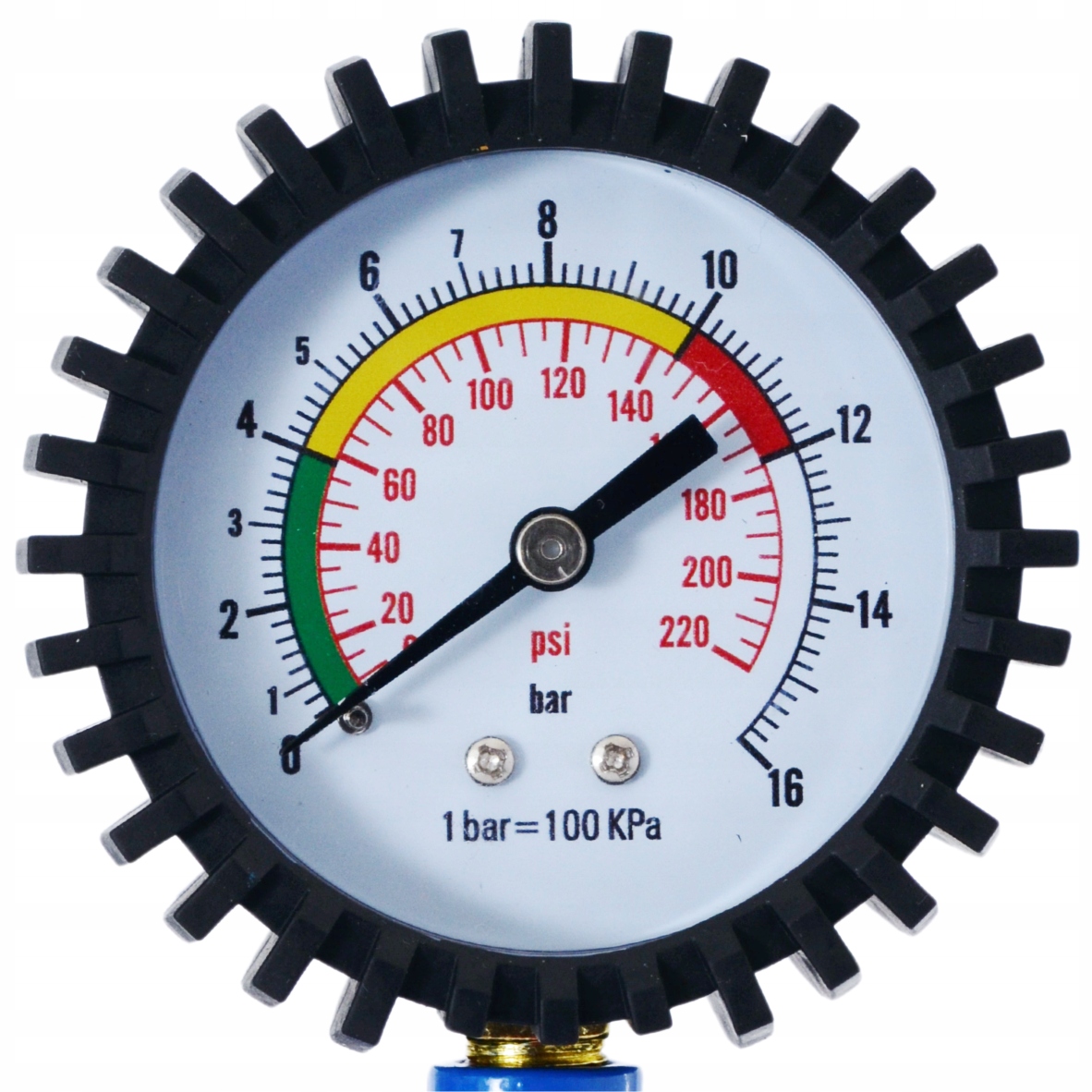 пістолет - це професійний інструмент для накачування коліс зі стандартними вентиляторами автомобілів. Барометр захищений густою гумою, яка захищає її від пошкоджень, які можуть виникнути внаслідок необережного осадження.