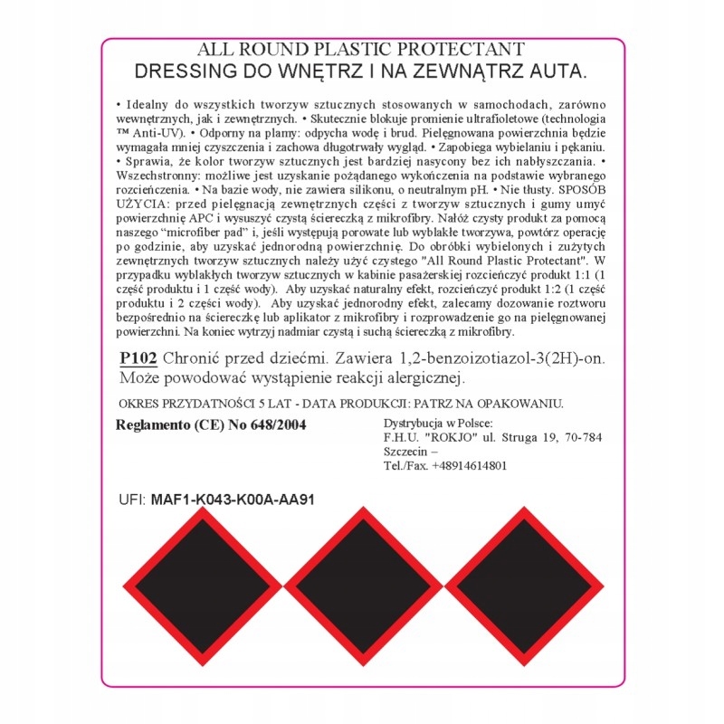 mafra всю круглий пластиковий захист є вдосконаленою пластиковою заправкою , призначеною для догляду за внутрішніми та зовнішніми елементами в автомобілі. Продукт був розроблений брендом італійською маркою Mafra для ефективного захисту пластмас від старіння, згасання та бруду, відновлення фабричного вигляду .