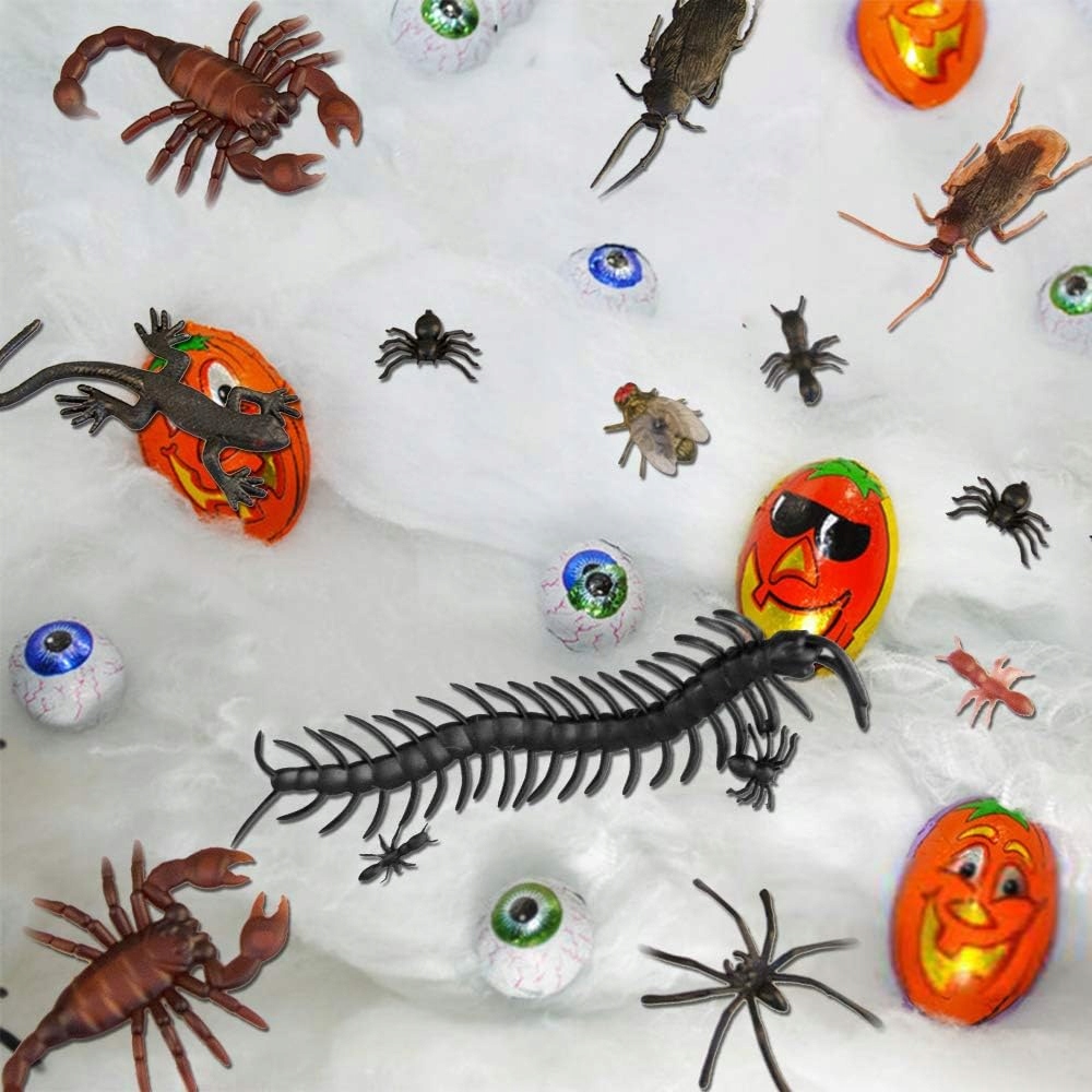 Пластикові комахи 150шт Хеллоуїн - павуки, кажани, щури, таргани