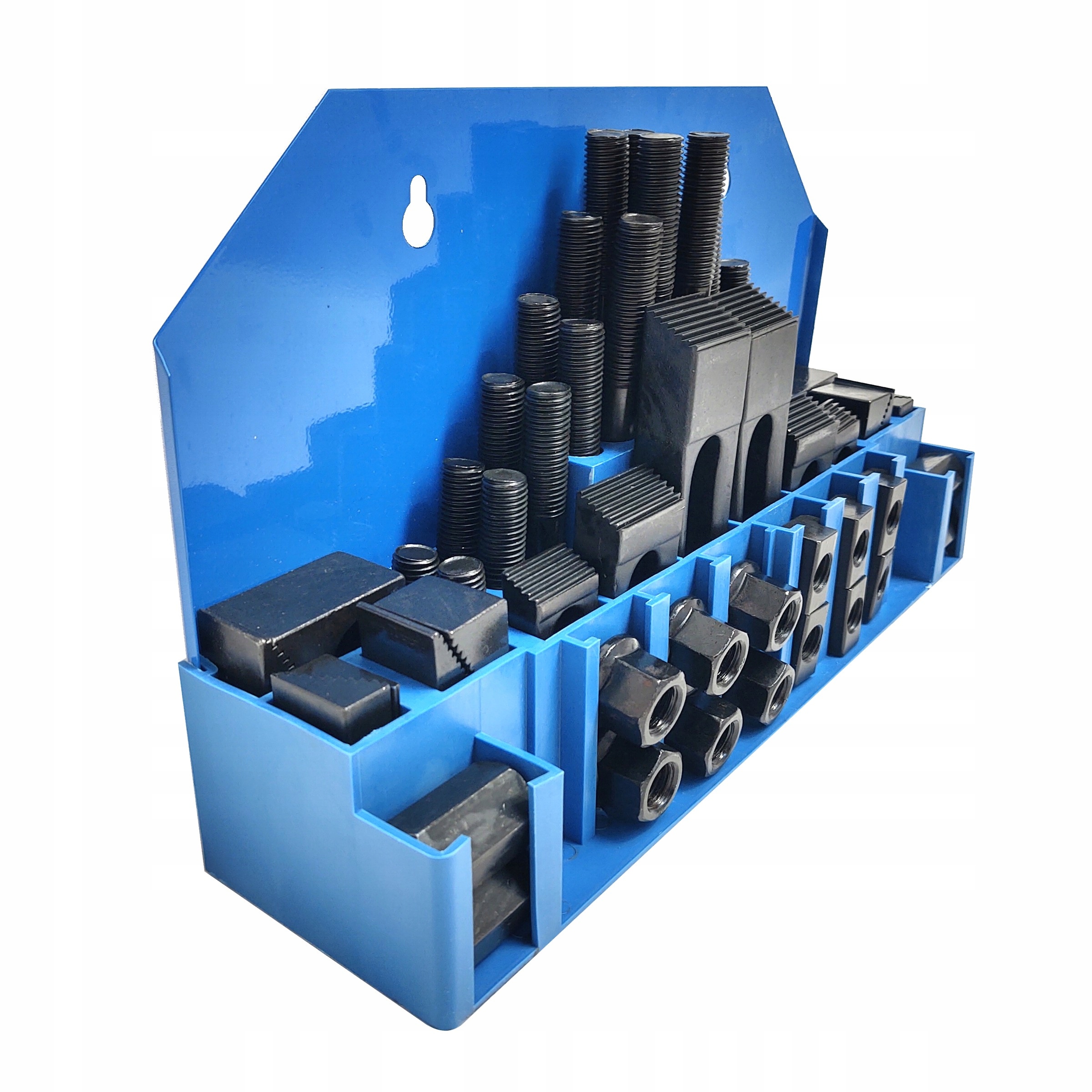 Набір кріплення лап використовується в фрезерних машинах, свердлах та інших слюсарях, які мають таблиці, оснащені десятками. Містить: