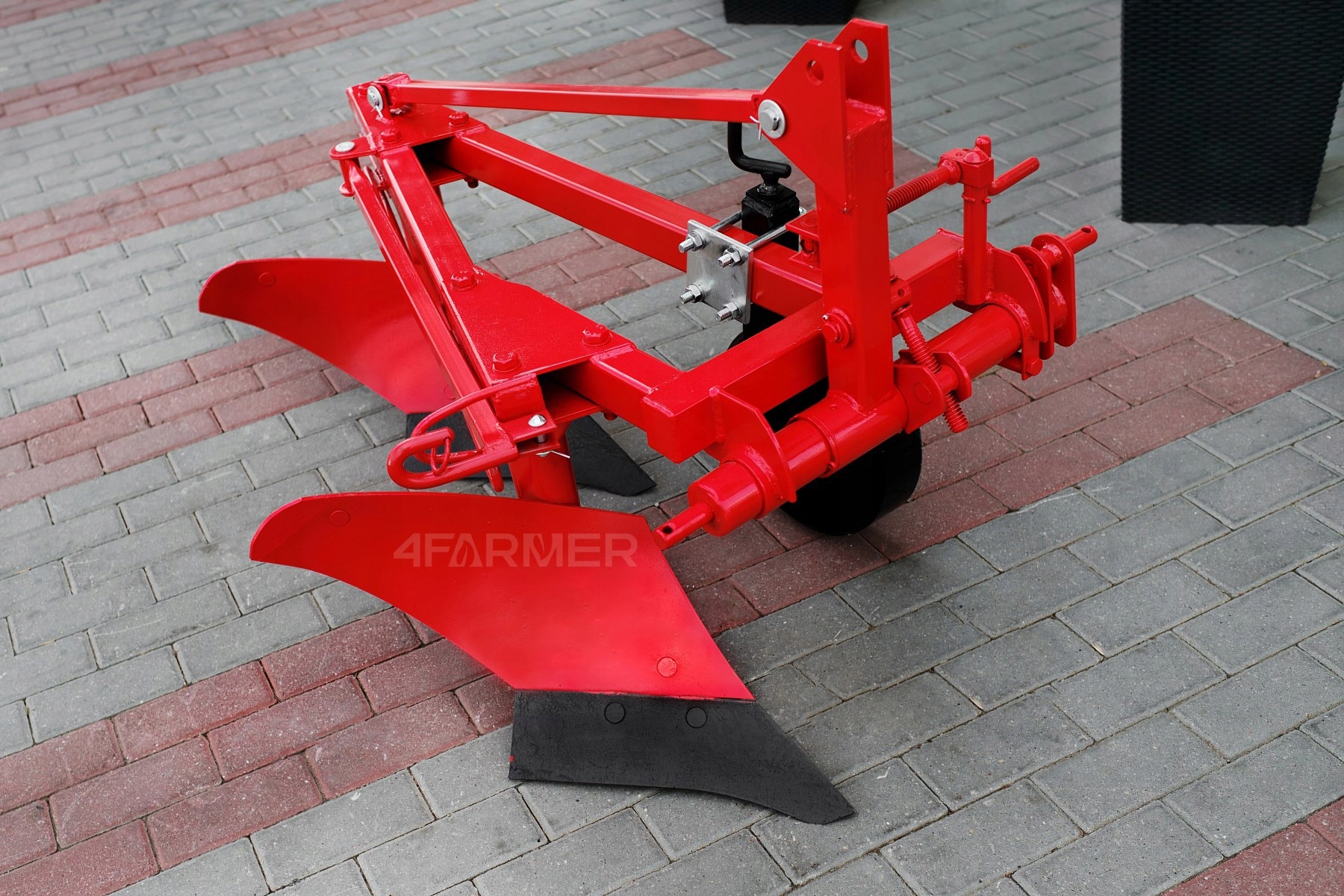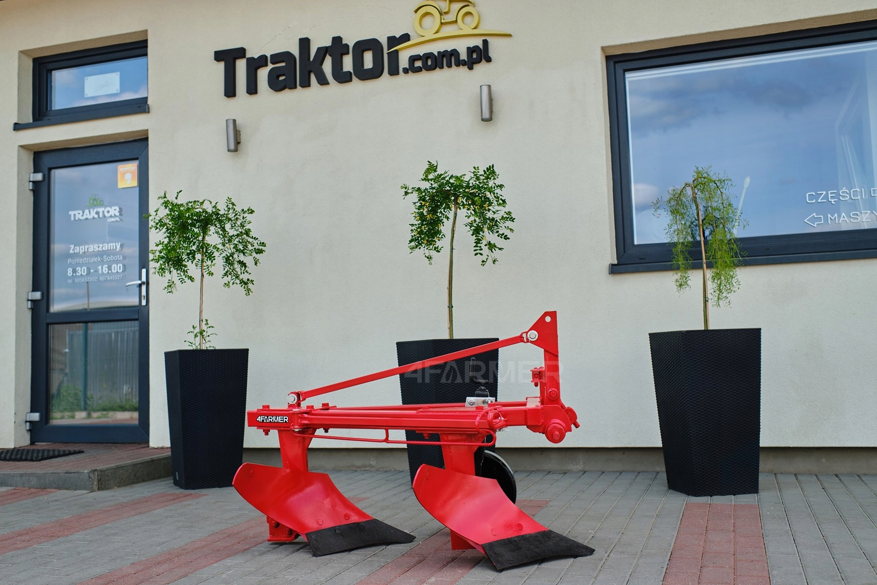 Плуг подвійної команди 4farmer 2L-1 -це плуг, який складається з леза, сłпік та дилерів та кола підтримки, і це плуг , що висить у тракторі на 3-очковому гачку kat та . Червоний плуг 4farmer - оранка з регульованим бічним, що дозволяє переміщувати горизонтальний плуг відносно осі трактора, поздовжні регулювання та має регульовану висоту положення опорного кола.