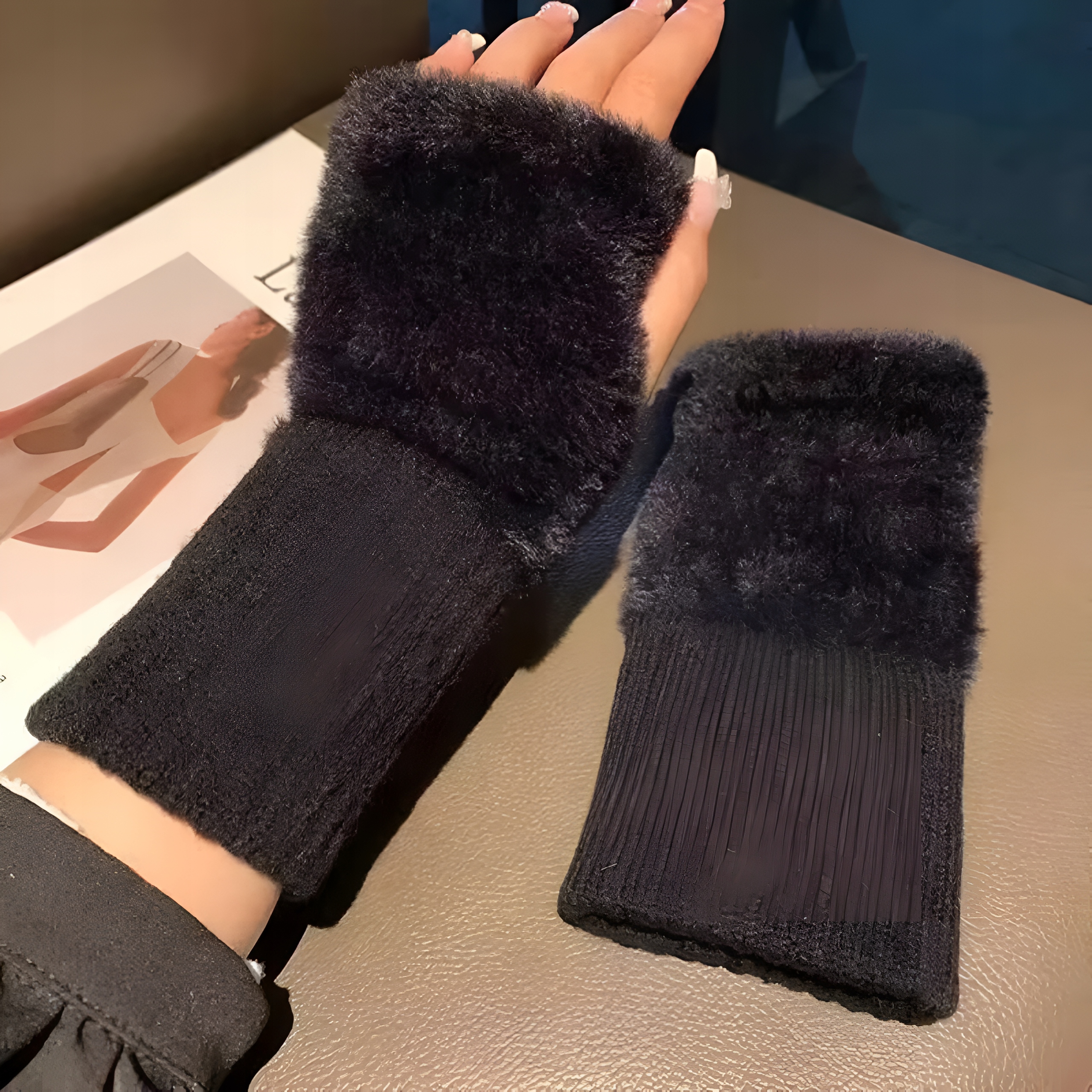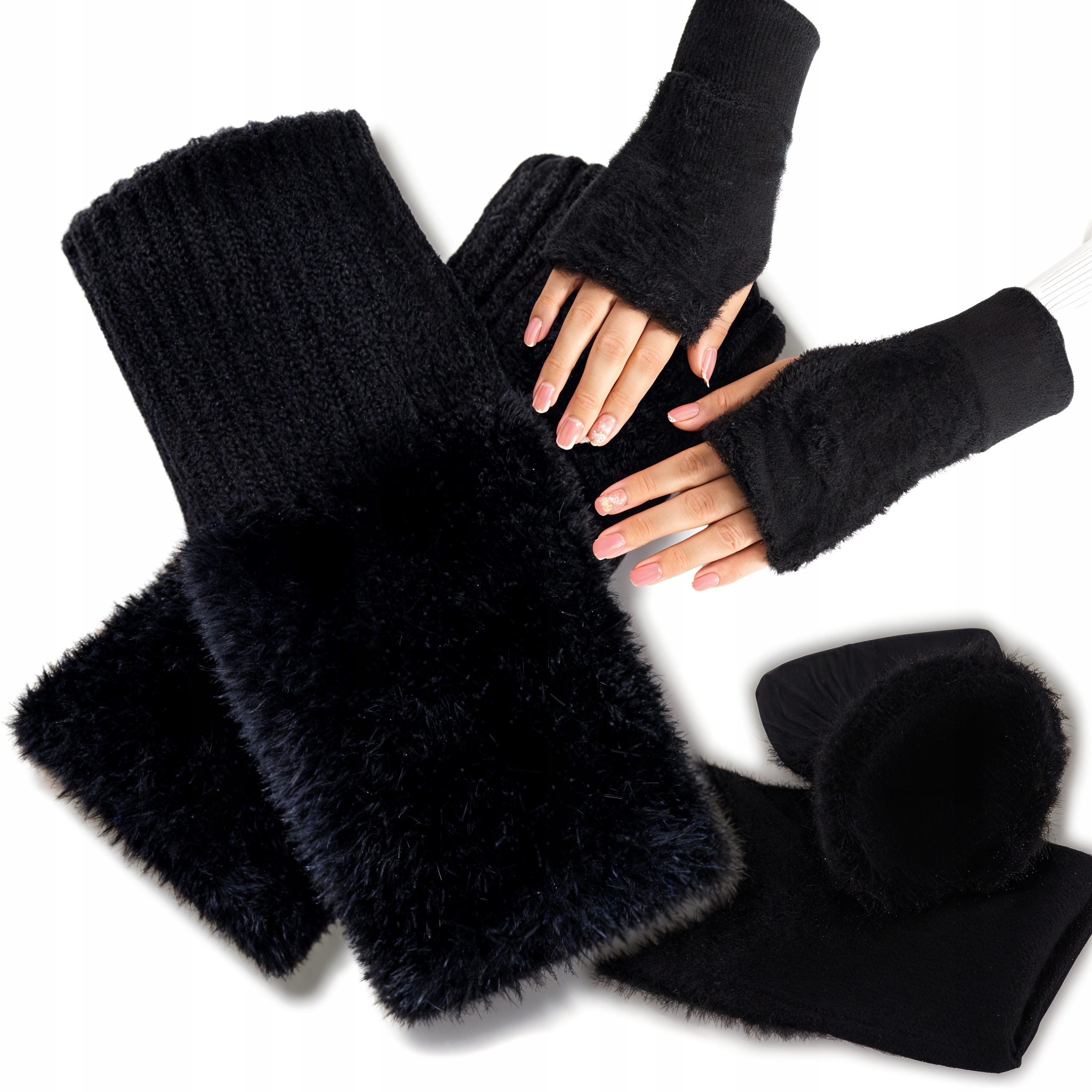 ПЛЮШЕВІ РУКАВИЧКИ БЕЗ ПАЛЬЦІВ ЖІНОЧІ ЗИМОВІ РУКАВИЦІ З ХУТРОМ, ЧОРНІ