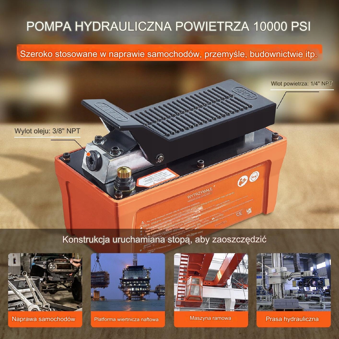 Що Інтегрована гідравлічна олія, готова до використання відразу після видалення з коробки. Експлуатація стопи робить операцію більш інтенсивною роботою. Ніжний крок на насос чинить тиск і уповільнює тиск.Широке застосування
