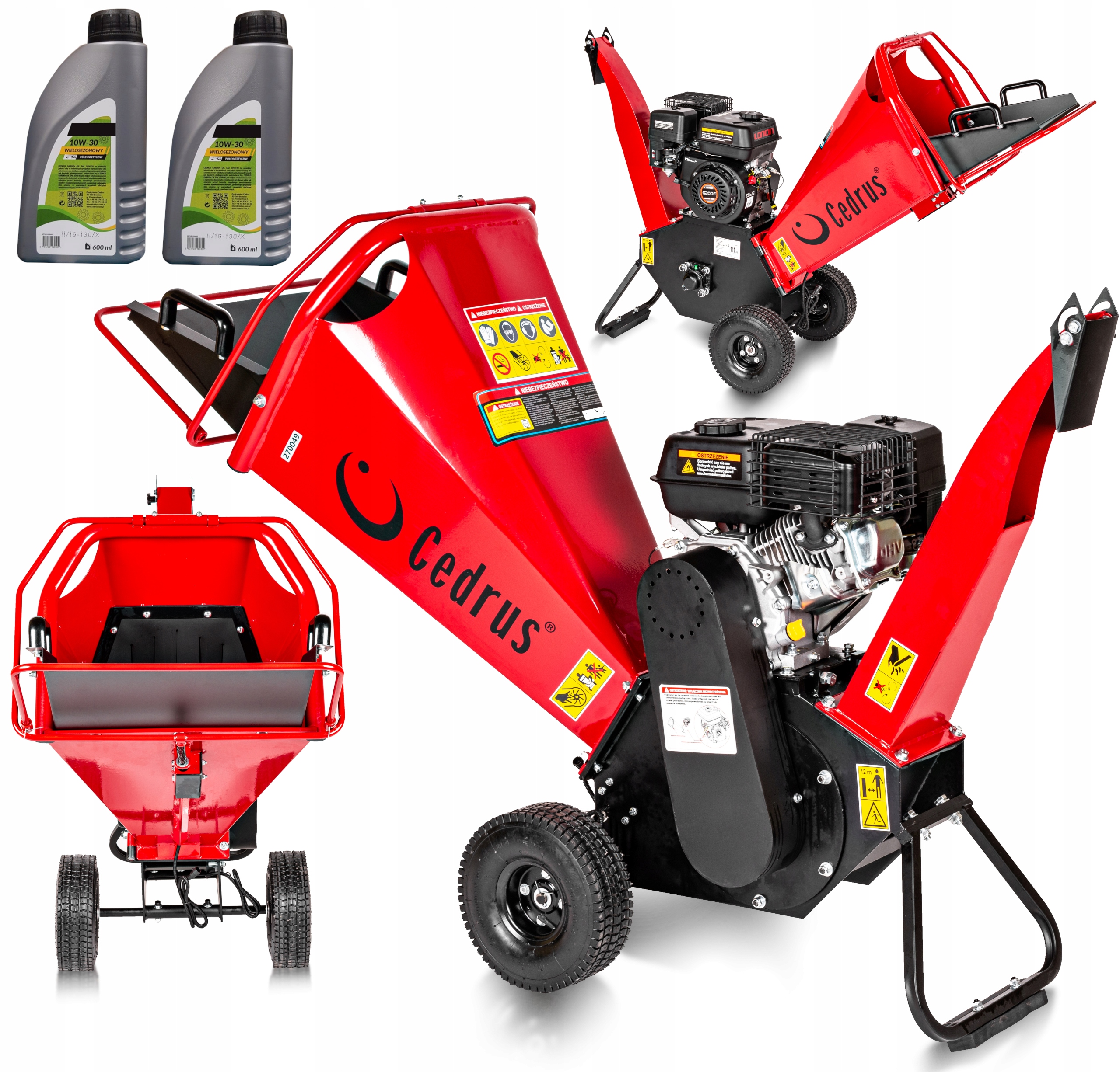 Пристрій оснащений двома запобіжними вимикачами b>, регульованим випускним димоходом, надувними колесами, зручною ручкою для транспортування та широким вхідним отвором дозволяючи працювати навіть із сильно розгалуженими гілками.