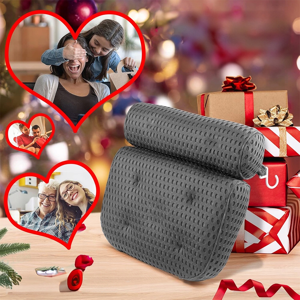 Ця подушка для ванни використовує технологію 4D air mesh, виготовлена з високоякісного матеріалу, що забезпечує хмару м’якості, відмінну повітропроникність і вентиляцію. , що дозволяє воді та повітрю швидко проходити, зберігаючи комфорт шиї, шиї та плечей.
