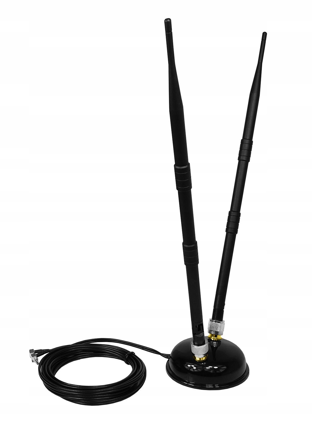 Магнітна подвійна антена, незважаючи на використання зовні та всередині приміщень. Присвячений для отримання та трансляції сигналу з модему, маршрутизатора 3G/LTE/5G. Антена має прибуток 10DBI, оснащений двома 3 -метровими проводами антени, закінченими змінними роз'ємами TS9 -CRC9 (TS5), антена підтримує технологію, незважаючи на - незважаючи на (незважаючи на сторону прийому.