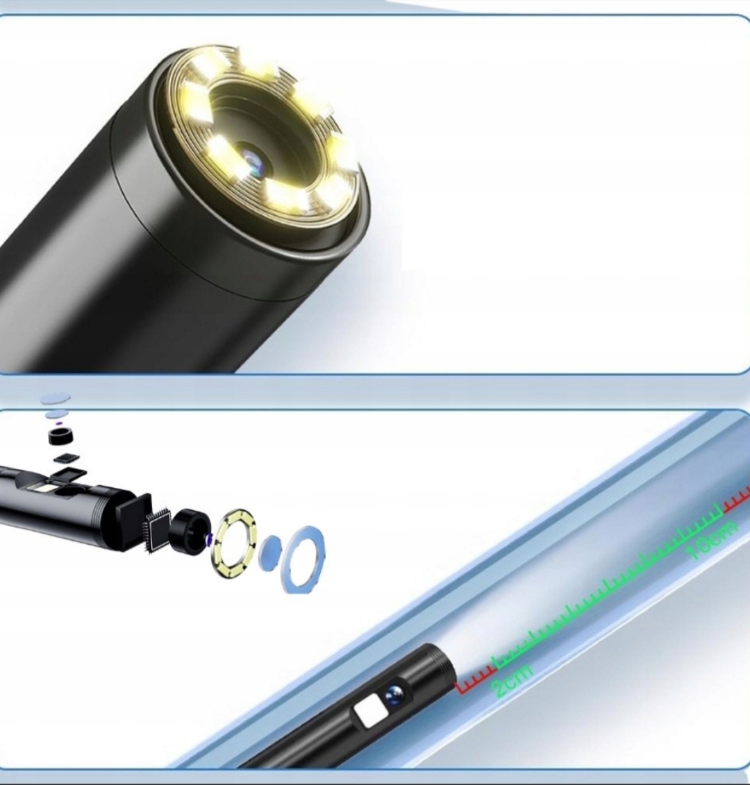 - Збільшений об'єктив- діаметр 5 мм гарантує більш точну та чіткішу картину. Кабель навіть досягає найдальших куточків. підключення 3in1 (USB, microUSB, USB-C), сумісний з більшістю пристроїв.