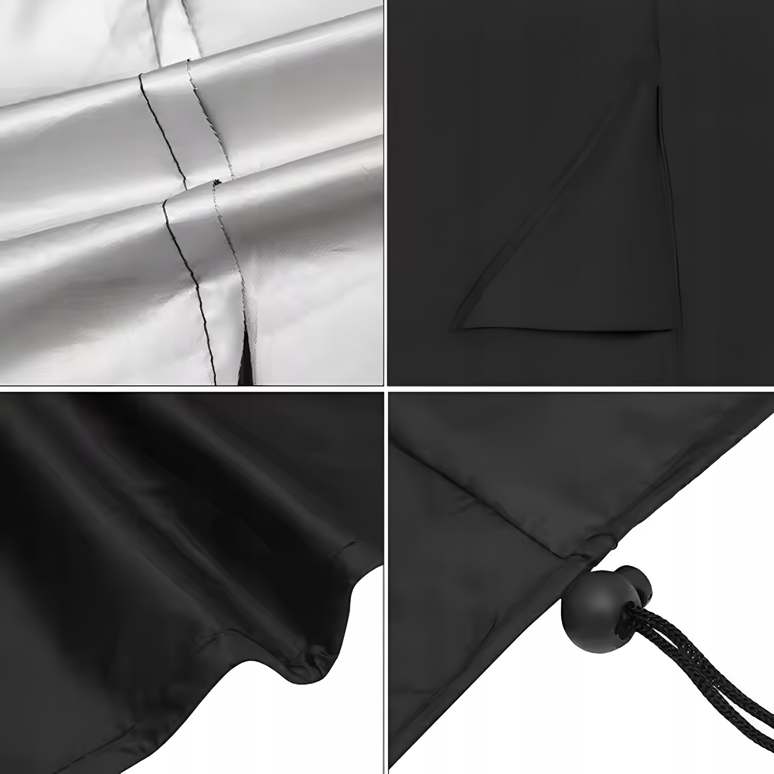 Кришка була виготовлена з високої якості, водонепроникного матеріалу. Тканина ефективно запобігає потраплянню вологи до інтер'єру навіть під час сильних опадів. Завдяки цьому, гриль залишається сухим і добре захищеним від іржі. Матеріал не тільки водонепроникний, але й міцний і стійкий до стирання . Навіть після тривалого використання він не втрачає своїх захисних властивостей. Це ідеальне рішення для людей, які зберігають гриль на вулиці протягом року.