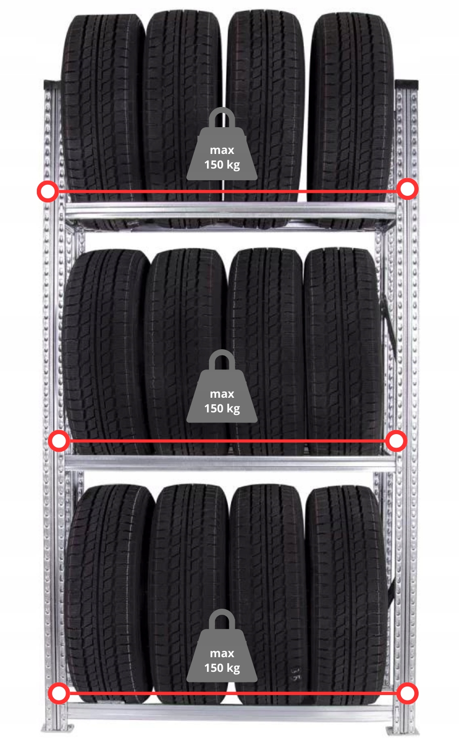 Функціональний і надійний стелаж для зберігання шин або колісдля професійних майстерень, сервісних центрів, шинних складів, шинних готелів і домашніх гаражів і підвалів.
