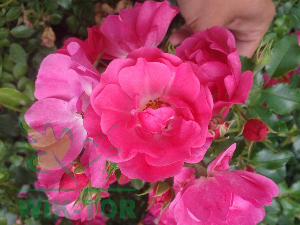 Обкладинка піднялася в сорті "Теміда" з красивими інтенсивно рожевими квітами. Чагарник зростає до висотою приблизно 50-70 см і шириною близько 100-120 см. Рекомендована щільність посадки становить 5-6 штук на м2. Різноманітність ідеально підходить для посадки в місті, в зелених районах, на вулицях, парках та садах. За знижками, для рок -садів, у рок -водоймах.