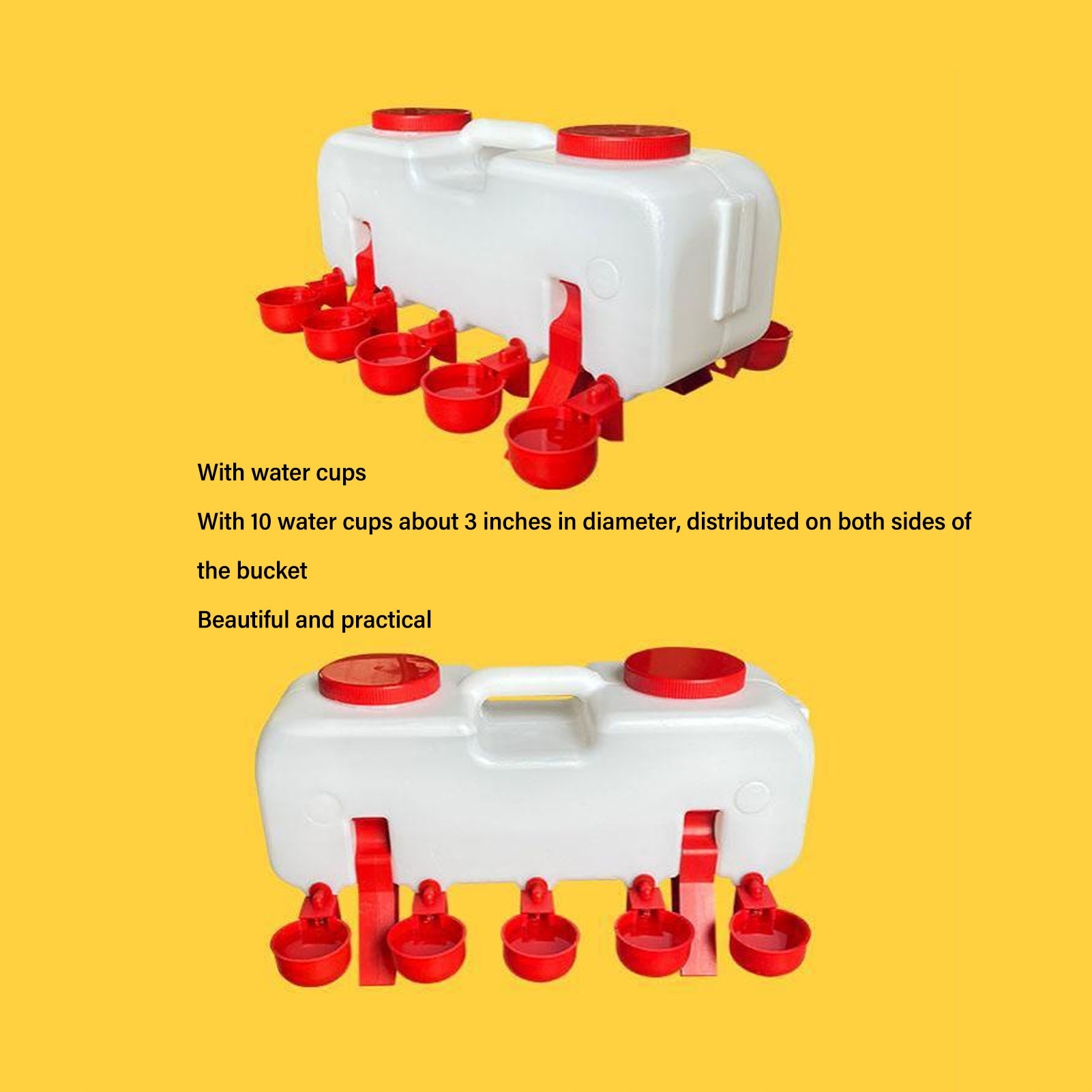 Функція:1. З СТАКАНАМИ ДЛЯ ВОДИ: курячий пойдо постачається з 10 ємностями для води діаметром приблизно 3 дюйми, розміщених з обох боків відра.