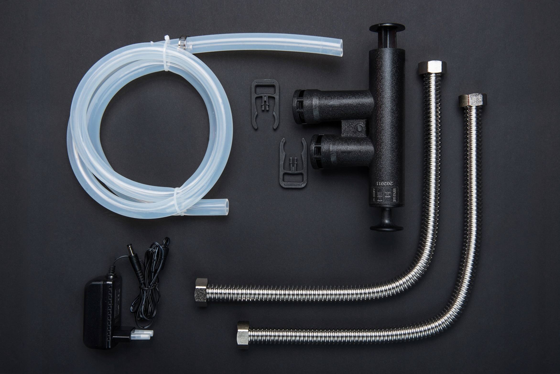 При покупці пом'якшувача води BERG в комплект входить перепускний клапан із запобіжними затискачами, зливний шланг до каналізації, блок живлення та гнучкі інсталяційні кабелі. Крім того, ви отримаєте від нас абсолютно безкоштовно: